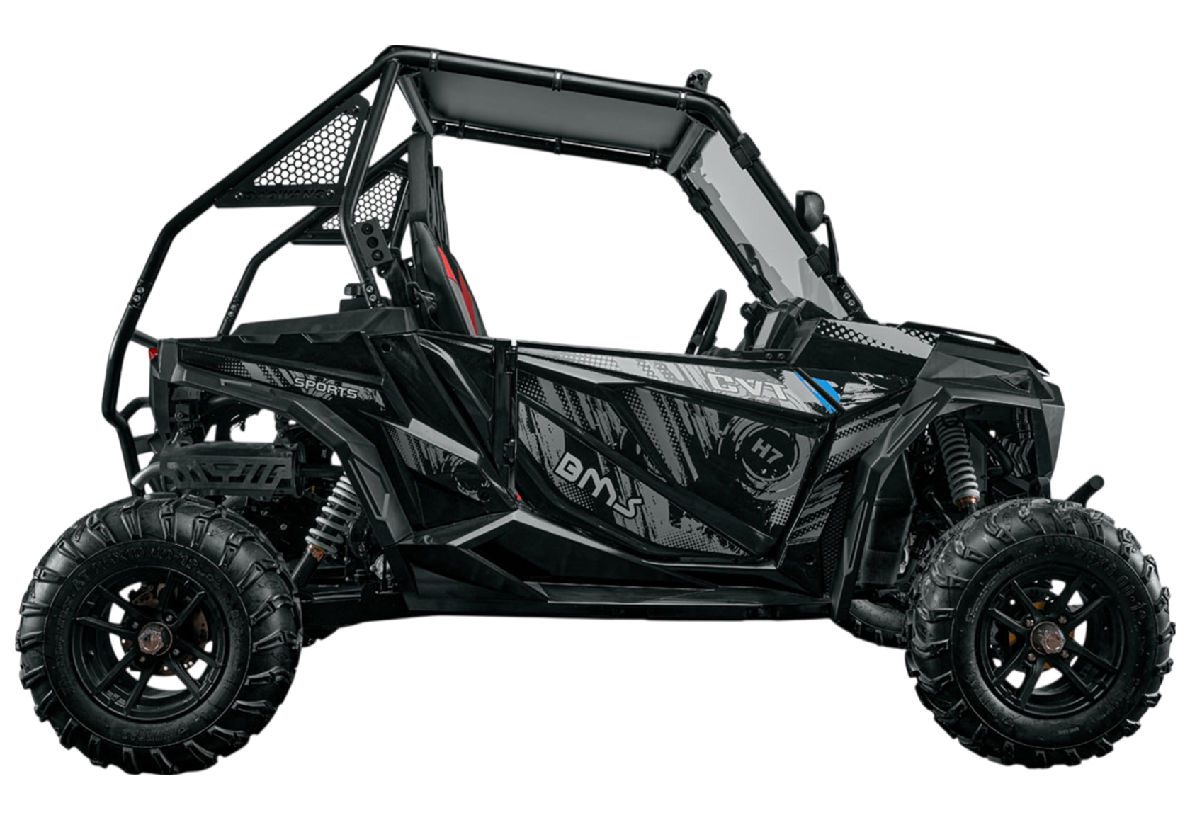 Багги BMS H7 - это новый взгляд на заднеприводные багги. Максимальный комфорт обеспечивает современная подвеска в стиле BRP, закрытый кузов, максимально удобный и функциональный салон.Эта модель сходу залетает в сердце всем представительницам прекрасной половины человечества. Закрытый корпус усиливает ощущение безопасности и защищенности. Плавные линии привычны после городского авто. А камера заднего вида как вишенка на торте!Эта багги отлично подойдет для прогулок по лесным дорогам и по просторам полей. На каменистых участках не отдает в спину и позволяет наслаждаться видами вокруг. Глубоких бродов так же не боится. Но грязь и горы - это не ее стихия. Равная колея переда и зада не позволяют Н7 преодолевать грязные и заболоченные участки. В горах же всему виной большой вес Н7.Багги BMS H7 имеет богатую базовую комплектацию:- Полноценный, качественный свет в совокупности с дополнительной световой балкой на крыше.