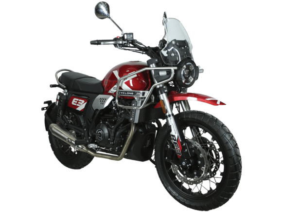 CYCLONE RE401 (SR400-B) 2024 – классик, в котором подчёркнутая простота объединяется с современными технологиями. Данная модель является более продвинутой версией модели RE3 (SR-400) – мотоцикл обладает более современным дизайном, снабжён стильными металлическими накладками на радиатор, а также топливным баком, объём которого увеличен до 20 литров.Двухцилиндровый четырёхтактный двигатель объёмом 401 см3 выдаёт 43 л.с. на 9500 об/мин. Инжекторный впрыск топлива с инжектором BOSCH увеличивает топливную экономичность, а также позволяет добиться высокой приёмистости и неприхотливости агрегата. Жидкостная система охлаждения не допустит перегрева двигателя даже при самом агрессивном вождении. На мотоцикл установлена 6-ступенчатая механическая коробка передач.Максимальная скорость мотоцикла составляет 150 км/ч.RE401 оснащён классическими спицованными колёсами диаметром 17 дюймов. Колёса обуты в бескамерные покрышки TIMSUN. С неровностями дороги эффективно справляются телескопическая вилка перевёрнутого типа спереди и маятник с двумя амортизаторами сзади. Ход передней подвески составляет 130 мм, задней – 81 мм. Оба компонента подвески являются регулируемыми. Эффективное и безопасное замедление с любых скоростей обеспечивают гидравлические дисковые тормоза с ABS спереди и сзади.Клиренс мотоцикла составляет 170 мм. Объём топливного бака – 20 л. Снаряжённая масса – 186 кг.Из дополнительного оборудования можно выделить USB-порт и датчики давления в шинах.Мотоцикл сочетает в себе отличные технические характеристики, комфорт и надёжность, что позволяет вам ощутить настоящую свободу на любой дороге.
