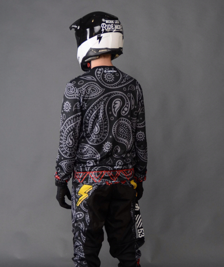 Классический комплект момтоэкипировки.Особенности:Штаны:• Кожаные накладки на внутренней стороне голени;• Замок-трещётка с регулировкой;• Боковые утяжки на липах;• Крой выполнен с учётом наколенников;• Мягкие вставки расположены в области колен;• Тянущийся материал в нужных местах для свободы движений.Джерси:• Крой реглан или классика;• Учтён запас под налокотники;• Лёгкий и быстросохнущий материал;• Принт не выстирывается и не выгорает;• Выбор тканей и кастомизация(Нанесение номера и фамилии на экипировку - бесплатно.Разработка вашего дизайна по ТЗ, оплачивается дополнительно).Ткани ( на заказ и на выбор, ложная сетка уже входит):• Ложная сетка(стандарт): Самая распространенная ткань в производстве формы. Отлично зарекомендовала себя, как золотая середина. Мягкая на ощупь, с выраженной фактурой;Производство: Индонезия;• Состав: 100% Полиэстер;• Плотность: 135 гр.• Ткань Cube:Уникальная ткань. Сделана из FDY нити (дополнительно полированный полиэстр). Даёт ощущение шёлка, отлично охлаждает и отводит влагу. Не боится зацепов, не мнется, за счёт шлифовки дает чуть более сочные цвета формы.•Производство: Европа;• Состав: 100% Полиэстер;• Плотность: 135 гр.• Ткань CoolMax: Ткань с технологией CoolMax - отличные характеристики влагоотвода и комфорта. Мягкая, шёлковая на ощупь, ткань. Подходит для профессиональных занятий спортом.• Производство: Турция;• Состав: 100% Полиэстер;• Плотность: 130 гр.Ткань Олимп(стандарт):• Ткань с ярко выраженными отверстиями. Отлично продувается. Особыми свойствами не обладает.Часто используется для вставок.• Производство: Турция;• Состав: 100% Полиэстер;• Плотность: 135 гр.