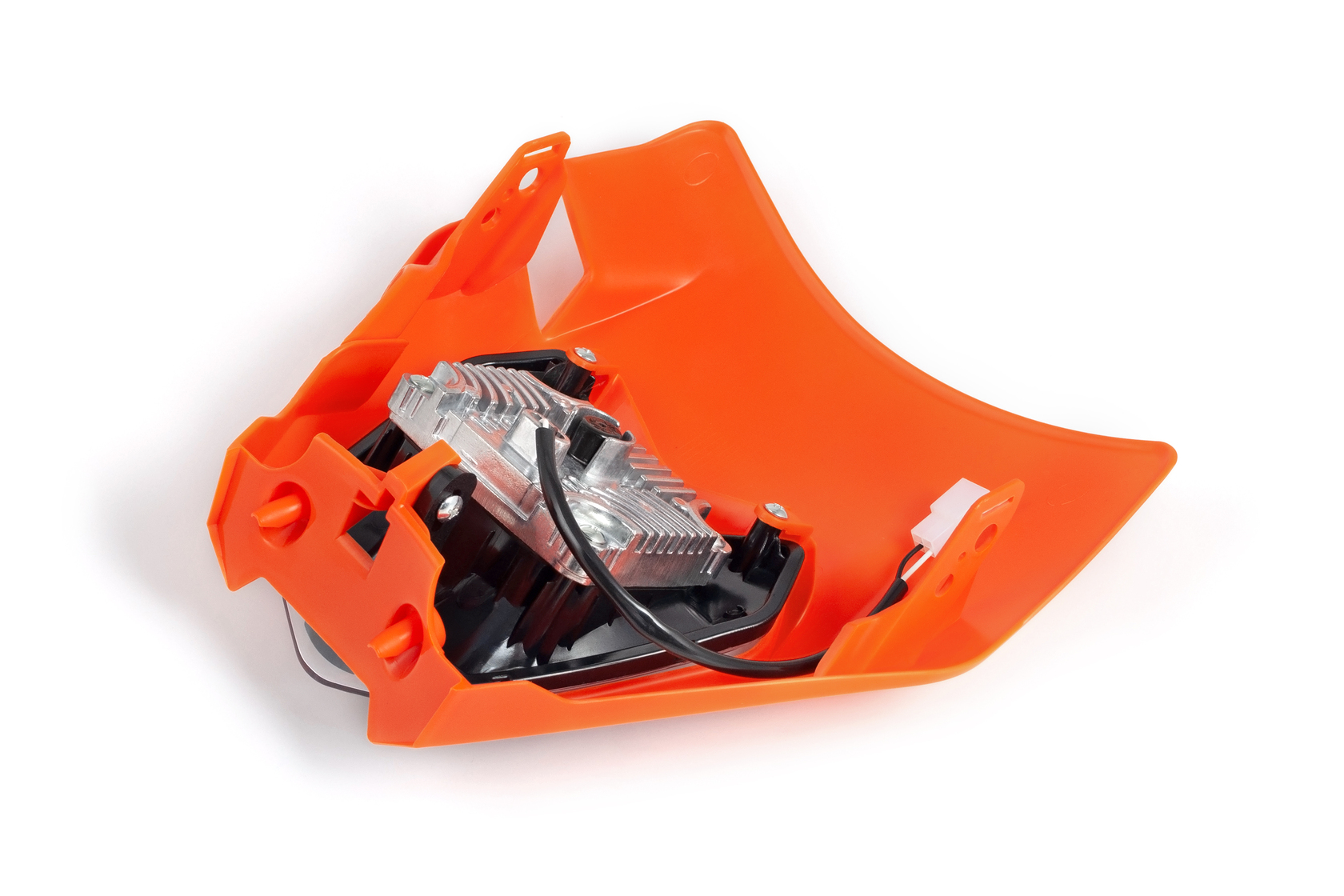 Готовый комплект LED-фары для установки в штатное место на мотоцикл. В комплекте идут крепёжные ремешки, прочный корпус и светодиодный модуль освещения, специально разработанный для использования на внедорожной технике. Предназначена для установки на мотоциклы KTM, Altete, GR8, Avantis и совместимые модели других марок.