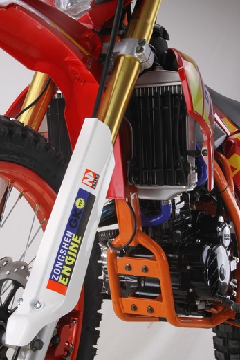 Эконика SPORT-007 – новый внедорожный мотоцикл. Его стоимость значительно ниже брендовых моделей со схожими характеристиками, но качество сборки в целом, как и отдельных деталей, отличное. В стальной раме с баком 6,5 литров установлен четырехтактный одноцилиндровый двигатель Zongshen Zongshen 170MM-2 мощностью 24 л.с, с механической коробкой передач и воздушным охлаждением. Мотоциклы оснащаются карбюраторамиNIBBI RACING PWK 32. Для удобства запуска мотора предусмотрен электростартер.Мотоцикл оснащен фарой головного света, что является необходимым условием для езды в сумерках и темноте, и LED указатели поворота. У нас Вы можете купить этот мотоцикл с бесплатной доставкой по РФ и гарантией до года. Также его можно приобрести в рассрочку или в кредит.
