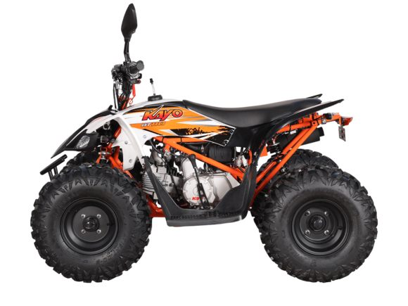 Квадроцикл KAYO AU125 – мощная внедорожная техника для весёлых заездов на природе. Наличие ПТС позволяет ездить по дорогам общего пользования. Габариты и мощность подходят для использования квадроцикла детьми от 11 лет.Оснащён одноцилиндровым 4-тактным двигателем YX154FMI объёмом 120 см³ с воздушным типом охлаждения. Обеспечивает мощность в 7,9 л.с. За подачу топлива отвечает карбюратор JK PZ22WL. Обеспечивает бесперебойную работу в самых жёстких условиях, лёгок в обслуживании и неприхотлив к качеству топлива. Трансмиссия имеет цепную передачу и автоматическую коробку с реверсом и схемой F-N-R. Ёмкость бака 4,5 литра.Диаметр колёс 8 дюймов. Подвеска спереди и сзади представлена амортизаторами длиной 265 мм. За торможение отвечает дисковая гидравлическая система.Квадроцикл оснащён комплектом светотехники для поездок в тёмное время суток и по дорогам общего пользования.Габариты квадроцикла 1430х860х890 мм, вес 98 кг.