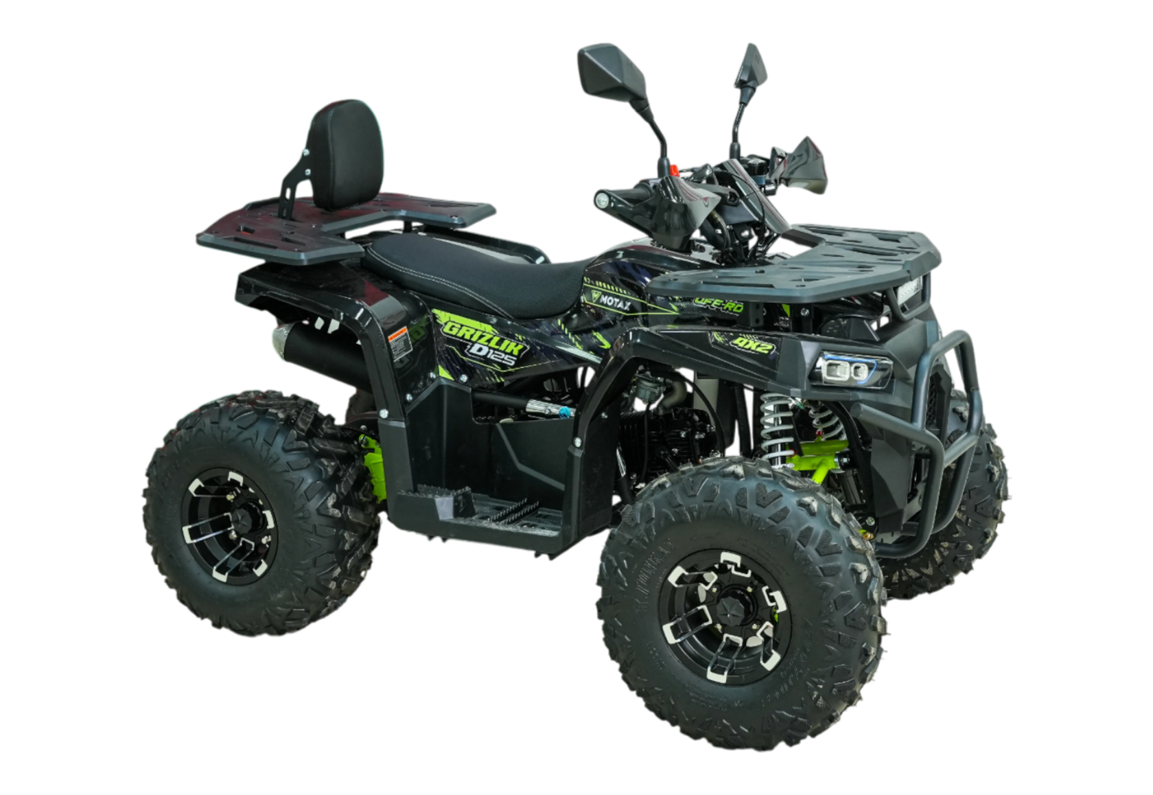 Квадроцикл бензиновый MOTAX GRIZLIK D125 LUX. Оборудован четырехтактным бензиновым двигателем, 125 кубов, мощностью 10 л.с. Развивает скорость до 55 км\ч. Допустимая нагрузка 100 кг.