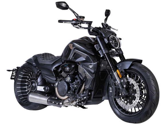 GROZA Timberwolf 800 – это не просто средство передвижения, а воплощение силы и выносливости, скрытых под привлекательным внешним видом.Сердце мотоцикла – производительный и надёжный V-образный 2-х цилиндровый 4-тактный двигатель с 4 клапанами жидкостного охлаждения. Максимальная скорость, которую может развить модель, – 160 км/ч.Механическая коробка передач имеет 6 ступеней. Ремень вариатора, произведённый компанией USA Gates, гарантирует долговечность. Топливная система представлена инжектором DELPHI. Запуск двигателя осуществляется с помощью электростартера.Передняя подвеска – перевернутая телескопическая регулируемая вилка с ходом 135 мм, задняя подвеска – пневматическая, регулировка которой осуществляется кнопками на руле или с брелока. Спереди о безопасном замедлении заботятся 2 4- поршневых суппорта с тормозными дисками 320 мм, сзади однопоршневой суппорт с плавающей скобой и тормозным диском 260 мм. Кованые алюминиевые колёса имеют размер 17х18 дюймов. На обоих колёсах есть ABS-система.Отличительная черта модели – увеличенная задняя покрышка 310 мм, которая делает вождение более устойчивым. Размеры модели 2420x890x1130 мм. Колёсная база 1650 мм. Клиренс 130 мм. Масса 288 кг. Топливный бак вмещает 22 л.Приборная панель представлена TFT-дисплеем с возможностью подключения смартфона. LED-оптика обеспечивает яркое освещение. Есть функция настройки сиденья по высоте – от 650 мм до 700 мм.GROZA Timberwolf 800 – сочетание потрясающей динамики, плавной подвески и брутального облика.Комплектация и внешний вид мотоцикла могут отличаться в зависимости от поставки. Изображение на сайте не гарантирует наличия тех или иных опций. Уточняйте информацию при оформлении заказа.