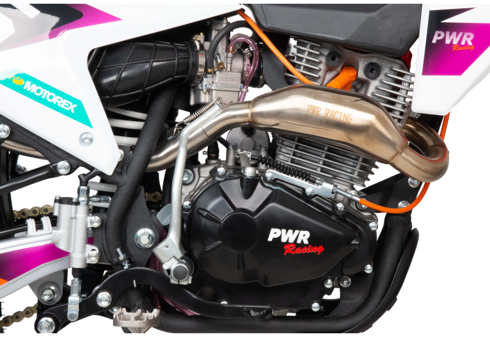 Мотоцикл Кросс 300 PWR KR300 (PR5 175FMM) это отличный кроссовый мотоцикл. Имеет хорошую проходимость и тяговую мощность за счет установленного двигателя с балансиром, мощностью 24 л.с., и карбюратором NIBBI 32.