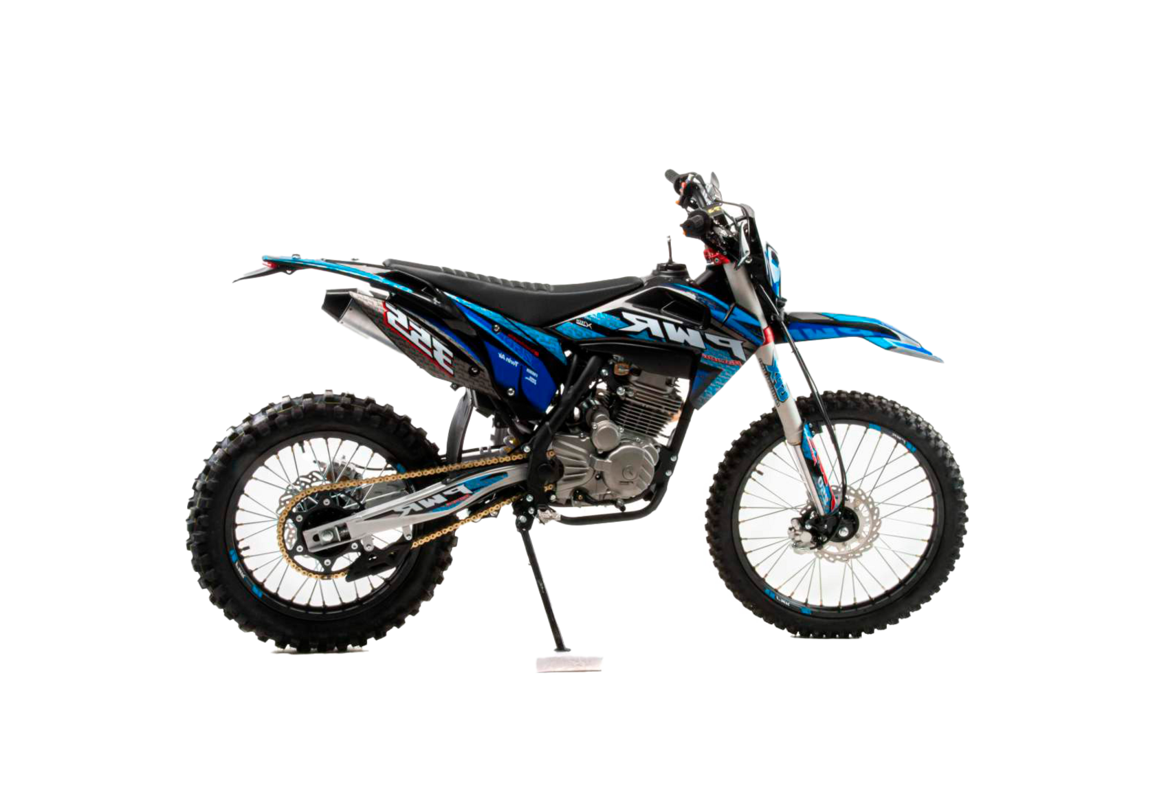 PWR FZ250 - новинка 2022 г. Современный дизайн мотоцикла подчёркивает спортивный характер байка.Установлен мощный 4х клапанный двигатель с воздушным охлаждением ZONGSHEN 172FMM-4VБольшой ход подвесок для комфортного передвижения по пересеченной местности, которые также позволяют ехать быстро и агрессивноВысокий вынос руля которые позволяет комфортно ездить в стойке и полностью контролировать мотоциклМотоцикл больше предназначен для езды по переченной местности полям и лесам, чем для города из за профиля резины.Он маневренный и удобный,сидение с противоскользящим чехлом.При этом он прост в управлении и неприхотлив в обслуживании и подходит мотолюбителям любого возраста,и опыта вождения.Технические характеристики:Антибуксаторы на заднем колесе для езды на пониженном давлении или защиты от прокручивания камеры