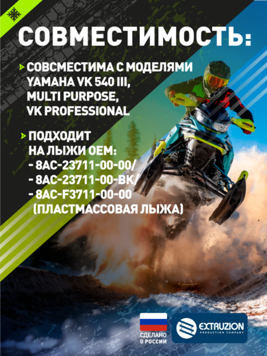 • Специализированная накладка на лыжи для снегохода Yamaha VK540 с уникальным профилем углубленного конька. Разработана для повышения курсовой устойчивости и улучшения управляемости. Обеспечивает надежную защиту стандартных лыж от износа и повреждений при эксплуатации в сложных зимних условиях.