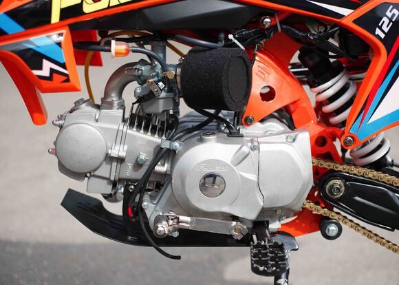 Представляем Вашему вниманию питбайк от молодого российского бренда Full Crew. Модель получила название FC125e 17/14. В ней собраны все ключевые моменты для покорения сердца питбайкера. Крепкая стальная рама, дисковые гидравлические тормоза, надежный и проверенный временем двигатель YX 125 с механической четырехступенчатой коробкой передач и фара. А самый огромный плюс – это демократичная цена и наличие электростартера на питбайке Full Crew FC125 17/14.