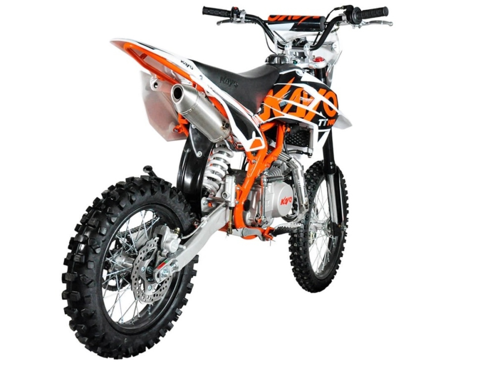 Питбайк KAYO BASIC TT140EM – надежный и сбалансированный аппарат для занятий мотоспортом начального уровня и утилитарных поездок по бездорожью. Данная модель отличается оптимальным подбором компонентов, а также располагает электростартером, что добавляет удобства при пользовании мини-байком.В основе конструкции питбайка лежит рама типа Evolution, из-за чего обновленная модель стала немного выше: высота сиденья в 885 миллиметров будет впору людям от 155 и выше сантиметров. В раме устанавливается 4-тактный двигатель YX1P56FMJ объемом 140 см3. Этот экономичный мотор с 4-скоростной трансмиссией отличают высокая надежность и солидный ресурс; показатели пиковой мощности составляют 13 л.с. Стабильность рабочих характеристик двигателя в широком диапазоне обеспечивает система воздушно-масляного охлаждения с выносным радиатором.Ходовая часть Kayo Basic TT140EM представлена колесной формулой 14/17 и традиционными для этого класса техники компонентами подвески: в передних траверсах зажата телескопическая вилка перевернутого типа, задняя подвеска – маятниковый рычаг с моноамортизатором. Регулировки амортизаторов отсутствуют, однако подвеска легко справляются с подавляющим большинством задач.Kayo Basic TT140EM можно порекомендовать для широкого круга поклонников внедорожных приключений и активного отдыха. Этот питбайк отличается превосходной управляемостью, достаточно высокими показателями производительности и комфортом использования, что делает эту модель привлекательной не только для начинающих, но и для мотолюбителей с опытом управления внедорожной мототехникой.