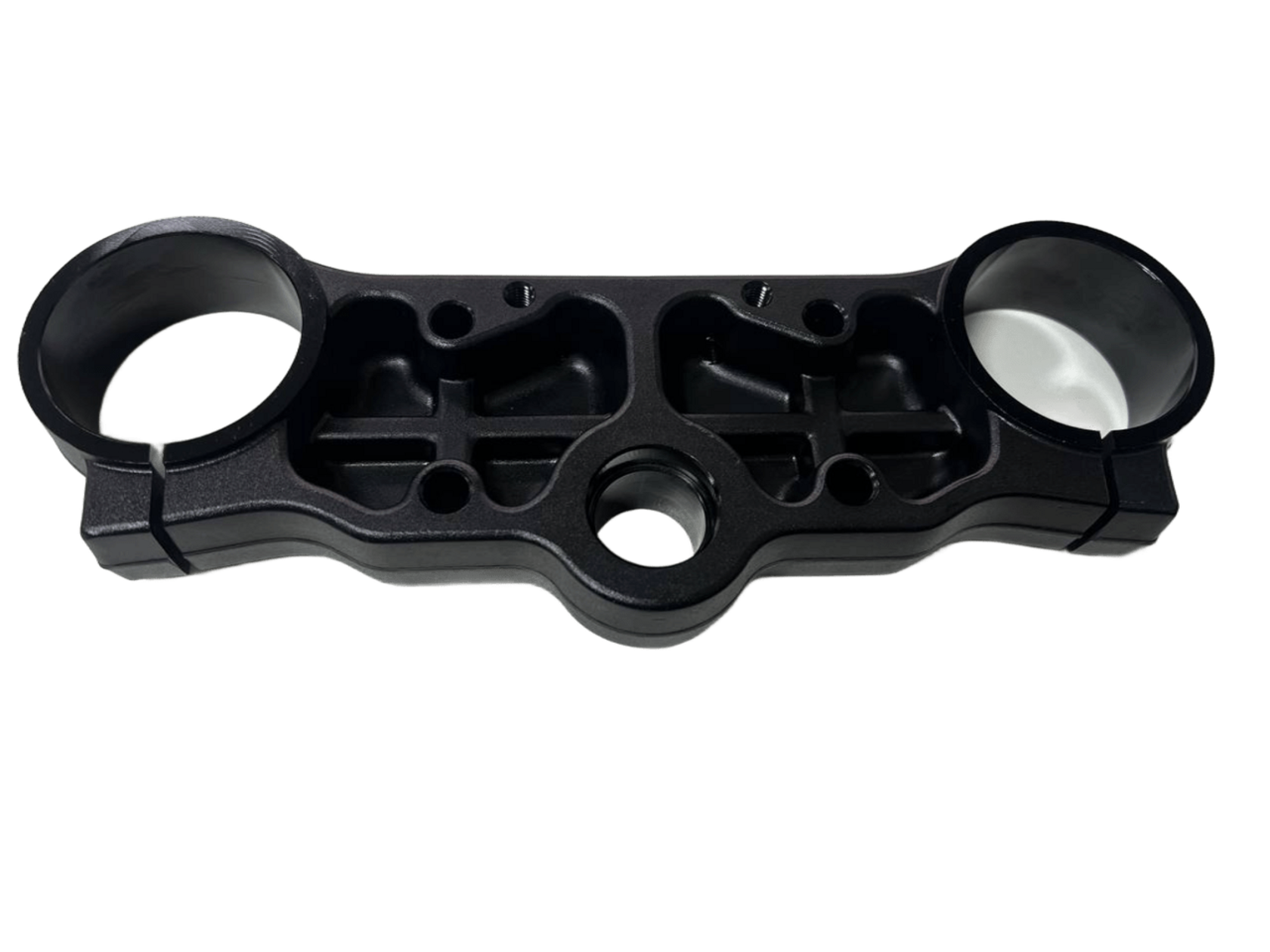 Алюминиевая верхняя траверса рулевой колонки для питбайков и эндуро мотоциклов. Обеспечивает жёсткое и точное крепление рулевой стойки, гарантируя надёжную управляемость и стабильность на любой скорости. Матовый чёрный цвет придаёт эффектный внешний вид и дополнительно защищает от коррозии. В комплекте поставляется только верхняя часть траверсы.