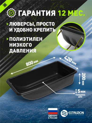 • Специализированные сани-волокуши для рыбалки и охоты, изготовленные из морозостойкого ПНД. Оснащены люверсами для удобного крепления буксировочной системы. Диапазон рабочих температур от -60C до +60C обеспечивает надежную эксплуатацию в экстремальных условиях.