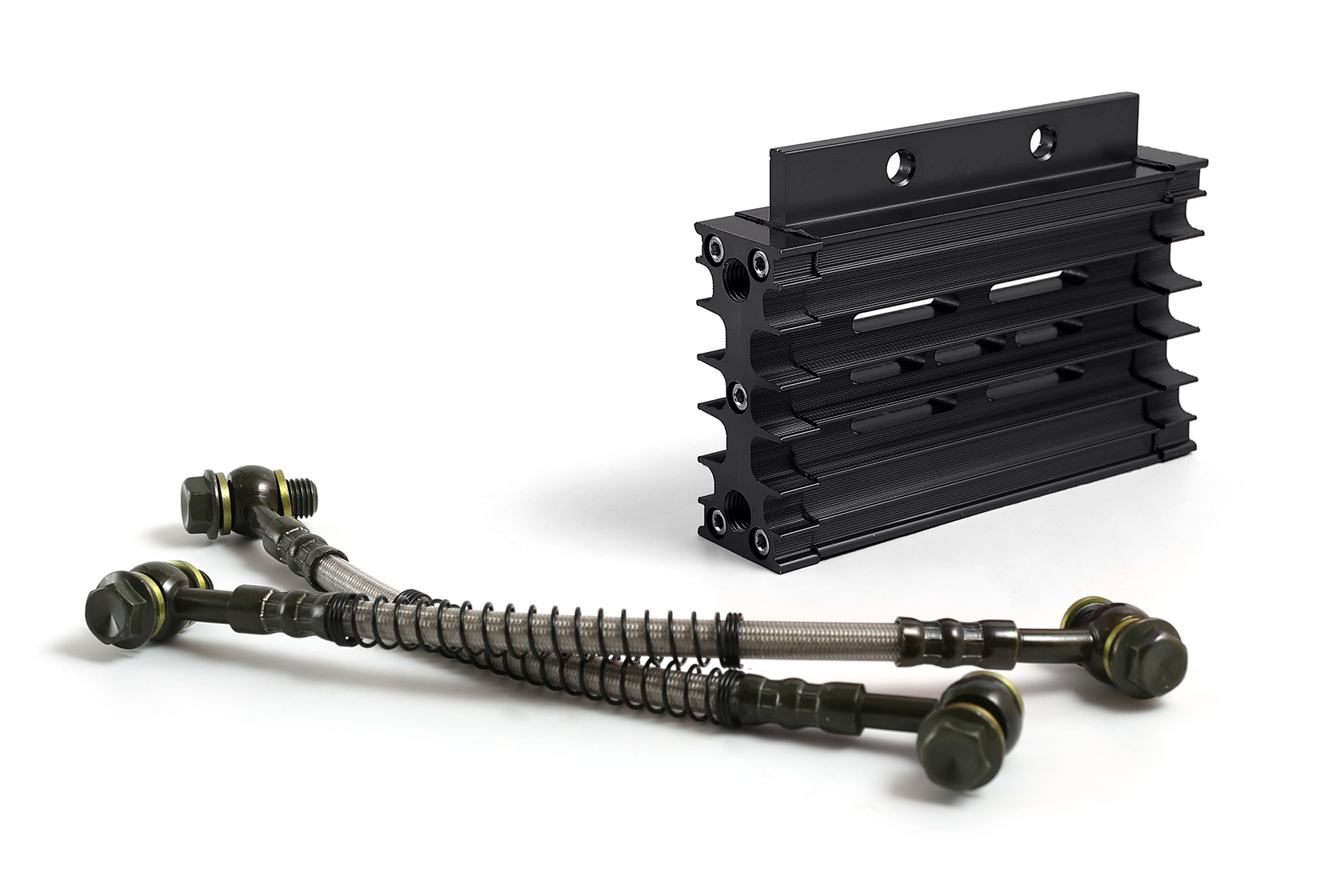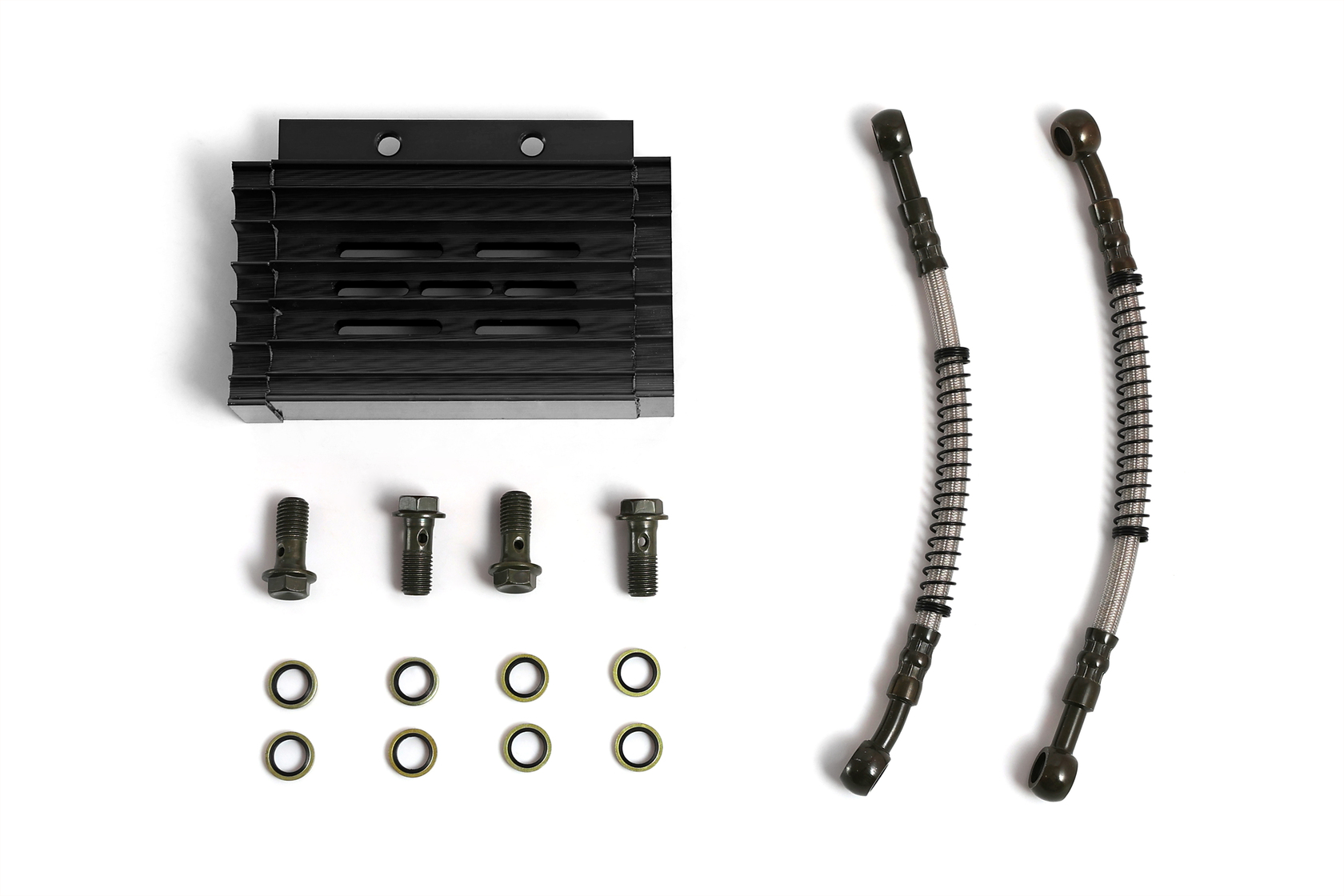 Высококачественный комплект радиатора масляного охлаждения с корпусом из прочного CNC-обработанного алюминия в стильном чёрном анодированном цвете. Разработан для установки на 90% питбайков и мопедов с объёмом двигателя от 125 до 190 см³. Обеспечивает эффективное охлаждение масла, защищая двигатель от перегрева и увеличивая его ресурс, особенно при повышенных нагрузках.