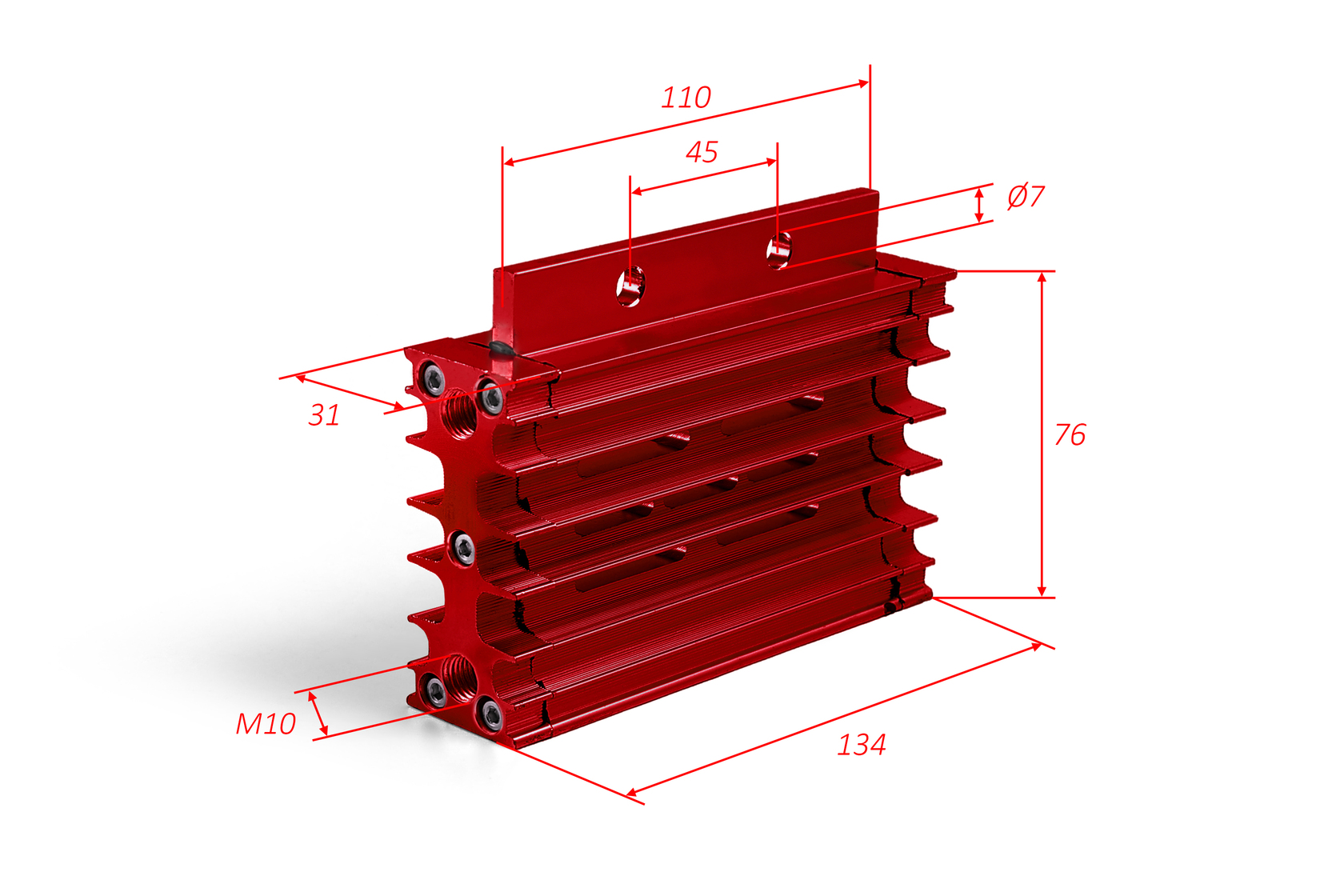 Эффективный радиатор масляного охлаждения с корпусом из алюминия, выполненный по технологии CNC, ярко-красного цвета. Предназначен для установки на 90% питбайков и мопедов с объёмом двигателя от 125 до 190 см³. Обеспечивает стабильное охлаждение масла, снижая риск перегрева двигателя и увеличивая его срок службы даже при интенсивной эксплуатации.