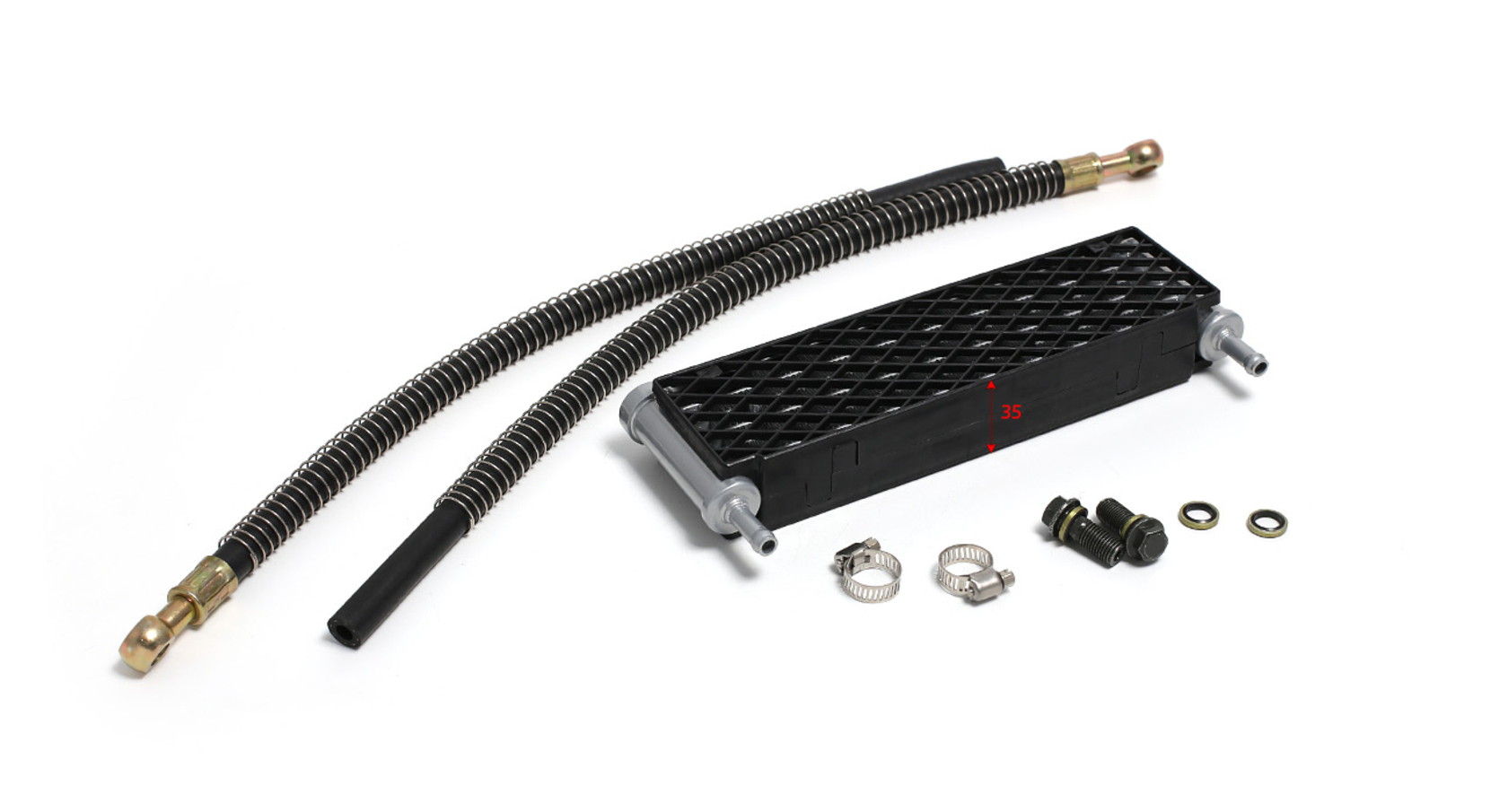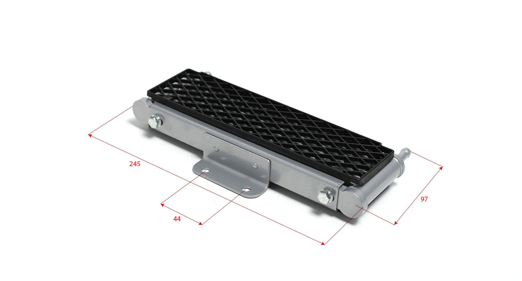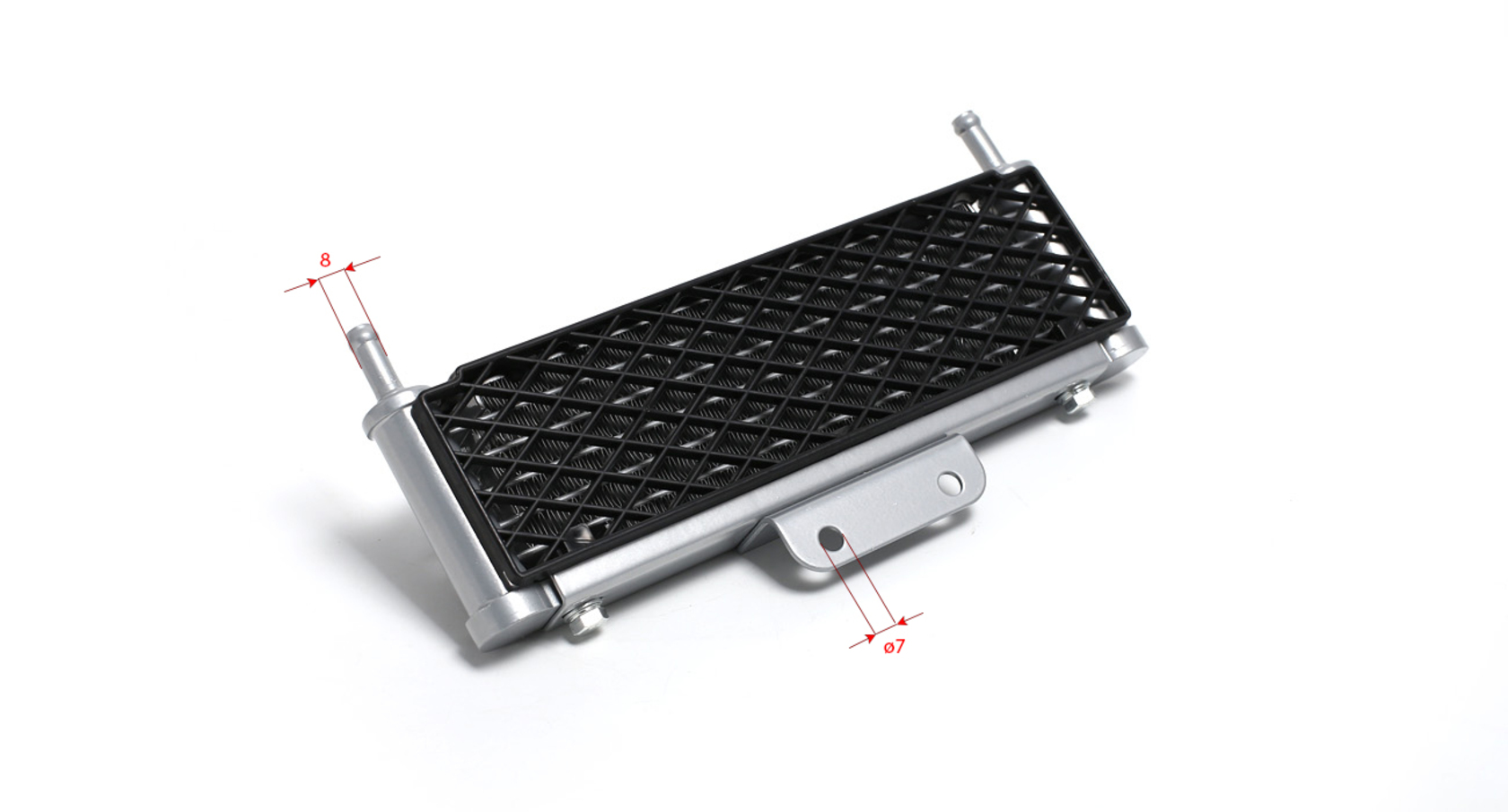 Широкий алюминиевый радиатор в сборе с шлангами — оптимальное решение для охлаждения высокооборотистых двигателей питбайков объёмом от 140 см³. Подходит для моделей YX140, YX140E, YX150E, YX150-5, YX150/160, ZS155/160/190E и большинства современных питбайков. Радиатор оборудован пластиковыми решётками с обеих сторон для защиты от камней и веток. Крепление осуществляется пластиной с двумя отверстиями, расстояние между центрами — 45 мм. Для подключения шлангов необходимы банжо-болты 10×1,25.