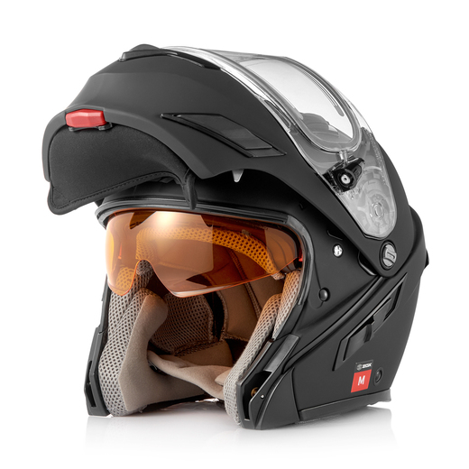 Шлем снегоходный ZOX Brigade, стекло с электроподогревом, мат.Материал оболочки:термопластик ABSПодкладка шлема:съемнаяЗастежка шлема:бугельная застежкаВес шлема (гр.):1 600Покрытие:мат.Солцезащитная шторка:ДаСтекло:стекло с электроподогревомZOX Brigade - это комфортный снегоходный шлем модуляр со стеклом с электроподогревом,интегрированным солнцезащитным визором, улучшенной видимостью и съемной моющейся подкладкойЭлектроподогрев визора предотвращает запотевание и обледенение, что улучшает обзор и увеличивает длительность поездки,а откидная фронтальная часть создает дополнительный комфорт при эксплуатации.• Первоклассная посадка шлема достигается за счет двух легких корпусов оболочки и трех внутренних частей из EPS (пенополистирола), что позволяет использовать широкий диапазон размеров• Большой визор с широким обзором и электроподогревом, эффективно предотвращаюим запотевание• Откидная часть спроектирована с дополнительным пространством для повышения комфорта и уменьшения запотевания• Секция челюсти легко поднимается одной рукой, даже в перчатках, благодаря высокочеткому функциональному переключателю• Вентиляция контролируется с помощью ультрасовременных клапанов с резиновым покрытием для легкого открытия/закрытия вентиляционных отверстий.Помогает уменьшить запотевание и повысить комфорт• Система SVS (Solar Visor System) имеет внутренний солнцезащитный визор оранжевого цвета, усиливает контрастность и четкость с превосходным противотуманным покрытием.Который легко опускать и поднимать с помощью нового высокотехнологичного рычажка с резиновым покрытием, для удобства использования в перчатках.Даже в пасмурную заснеженную погоду, вы будете четко различать перед собой ямы, кочки и другие особенности ландшафта.Защищает глаза от яркого зимнего белого света, отражанного от снега• Дополнительно установлена неопреновая "зимняя" шторка, защелкивающаяся на подбородке, и широкий отсекатель дыхания, плотно прилегает к лицу и убирает лишний теплый воздух от визора.Уменьшают ветер и шум• Высококачественная удобная съемная и моющаяся подкладка. Используемые материалы обеспечивают максимальный комфорт и долгий срок службы• Во внутренней части шлема предусмотрены места для установки наушников гарнитуры Bluetooth• Ремешок с быстросъемный бугельной застежкой, легко застегнуть или расстегнуть даже в перчатках• Соответствуют требованиям DOT FMVSS-218 и ECE 22-05 или превосходят их• Вес (+-) 1600грРекомендуем для катание на снегоходе и квадроцикле.Сезон осень, зима, весна.В комплекте:Шнур для электростеклаНеопреновая подбородочная шторкаОтсекатель дыхания