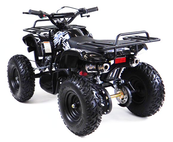 MOTAX GRIZLIK Х16 ES с электростартером и родительским пультом.Этот квадроцикл оборудован 6-дюймовыми колёсами и шинами с внедорожным протектором.Отлично подойдёт для детей от 3 до 8 лет.Квадроцикл оборудован компактным, двухтактным бензиновым двигателем объёмом 50 куб. см. в паре с фрикционным сцеплением центробежного типа. Это обеспечивает простоту и надежность конструкции. Квадроцикл имеет хорошую базовую комплектацию: он оборудован электрическим стартером, пультом дистанционного глушения и запуска двигателя, механическим ограничителем скорости, кнопкой быстрой остановки двигателя, яркими передними светодиодными фарами с режимом ближнего и дальнего света, раздвоенной системой выхлопа, механическим ручным стартером с механизмом легкого запуска. За счёт этого механизма существенно снижено усилие при запуске двигателя, с этой задачей может справиться и ребенок. Простота управления обусловлена фирменной передней подвеской полузависимого типа, которая позволяет сохранить стабильность в движении и лёгкость рулевого управления. Передние и задние механические дисковые тормоза способны эффективно остановить лёгкий и прочный квадроцикл.Детский квадроцикл оборудован передним и задним багажниками и прочным передним бампером. Эта модель отлично подойдёт как для получения первого опыта вождения, так и для активной езды по дачным дорожкам и лесопарковым зонам. Квадроцикл будет радовать ребенка круглый год! Он легко преодолевает небольшие препятствия, заезжает в горку, на бордюр. Ему не страшны лужи, грязь и песок.