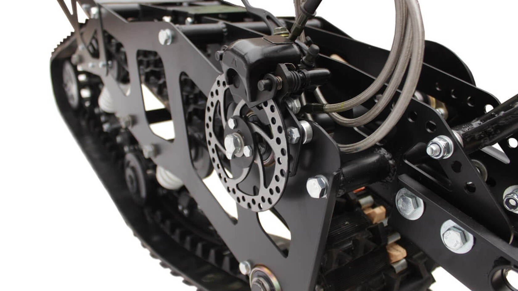 Alum.Данная комплектация собирается на базе Максимальной, но часть компонентов производится из алюминия. При этом часть высоконагруженных деталей остается из стали (рельс, рычаг, стойка лыжи, валы, рама). Это позволяет значительно снизить вес комплекта, а также, избавиться от потенциальной ржавчины.