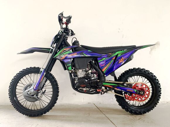 1BSE RUSSIA рада представить модель Т7 в новой комплектации SPORT.T7 Sport укомплектован профессиональной подвеской Mojo Racing (от компании ZL Sport). Передняя двухкамерная вилка с закрытым картриджем имеет полный диапазон регулировок, диаметр перьев - 48 мм, длина вилки – 930 мм, ход - 280 мм. Сзади установлен полностью настраиваемый моноамортизатор BSE Mojo Racing длиной 480 мм и ходом 120 мм. Подвеска с большими ходами помогает отрабатывать даже самые жесткие приземления, с лёгкостью "глотая" все неровности. Подвеску легко настроить под любой рельеф, любую трассу и стиль езды. Вы ощутите результат, когда будете сокращать секунды круг за кругом! Разработка подвески Mojo Racing производилась опытными инженерами-подвесочниками завода, а настройка — под чутким контролем заводской спортивной китайской командой BOSUER. Особое внимание было направлено на снижение веса всей подвески. Установлены новые усиленные CNC траверсы вилки.Также комплектация Sport включает в себя обновленную переднюю тормозную гидравлическую систему с диском диаметром 240 мм и новым фрезерованным передним суппортом Mojo Racing, для более мощного и прогнозируемого торможения. Также усиленное сцепление, фрезерованные траверсы вилки, фрезерованные подножки с увеличенным зацепом и более легкую фрезерованную заднюю звезду.Двигатель T7 – мощный, технологичный и тяговитый 4-х тактный Zonsen ZS174MN-5A (NB300). Рабочий объём 300сс, 4-клапанная ГБЦ, водяное охлаждение. Минимальные вибрации благодаря наличию балансирного вала. Система питания – проверенный карбюратор Nibbi Racing PWK34. Все это позволило снять внушительные 30 л.с. при 8500 об. в мин. и 22 Нм при 7500 об. в мин. Коробка передач – механическая 6 ступенчатая, запуск – только электростартером. Мотор очень эластичный, с отличными показателями крутящего момента на низах и верхах. А легендарная надежность завода моторов ZONSEN, удобство в обслуживании и доступность запчастей в представлении не нуждается!Ещё одна особенность модели Т7 – стальная рама, которая полностью соответствует всем стандартам самого известного австрийского бренда мотоциклов для кросса и эндуро – KTM. Единая геометрия, эргономика, пропорции и углы вылета вилки. Высококачественная сталь, малый вес и большой запас прочности, идеальная развесовка. Мотоцикл оснащен легким алюминиевым подрамником, системой прогрессии и пластиковой защитой мотора. Установлен новый тип пластика, прочный, легкий и современный.На T7 установлен топливный бак на 8 л, мощная тормозная гидравлическая система с дисками диаметром 240 мм, звезды 13t – 49t, «зубастые» покрышки CHAOYANG MX880 ST. Мотоцикл оснащается полностью светодиодной фарой головного света, грипсами и ручкой газа Nibbi Racing, металлической защита рук, CNC подножками с увеличенным зацепом, цепкой шкуркой сиденья и защитой тормозных дисков под карбон.Легкий, прекрасно сбалансированный, мощный мотор. Отточенная управляемость. Подходит для новичков, а также спортсменов в дисциплинах эндуро, хард-эндуро, супер-эндуро, мотокросс.