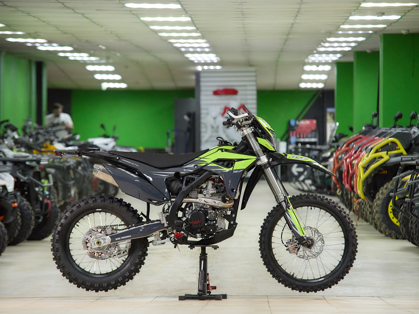 BSE Z7 – полноразмерный мощный эндуро мотоцикл с богатыми низами. Хотите прочный, мощный мотоцикл с жидкостным охлаждением на крепкой стальной раме? Планируете покорять новые внедорожные высоты и хотите начать принимать участие в эндуро гонках на серьезном уровне? BSE Z7 – идеальный выбор для покорения мира эндуро! Идеально сбалансированный, устойчивый, мощный эндуро мотоцикл на прочнейшей усиленной стальной раме. Сердце Z7 – мощный, эластичный и надежный 300 кубовый Zongshen ZS с водяным охлаждением. Отличный показатели крутящего момента на “низах” и “середине”. Система подачи топлива – спортивный карбюратор NIBBI RACING PWK 34. Z7 в заводской комплектации готов к покорению серьезного бездорожья благодаря полностью регулируемой подвески MOJO Racing c большими ходами, литым рычагам задней прогрессии, прямоточному выхлопу и “злой” внедорожной резине. Z7 идеально сбалансирован для эндуро, угол наклона вилки рассчитан специально для лёгкого преодоления высоких преград, подъёмов и барьеров. На мотоцикле установлены: прочнейший алюминиевый подрамник, усиленные легкосплавные колёсные диски, усиленная цепь, защита рук, датчик моточасов, прочные анодированные CNC ступицы, защита помпы и коллектора. Мощная гидравлическая тормозная система HSК Racing остановит байк в любых условиях. На BSE Z7 также можно с комфортном отправиться в продолжительное путешествие благодаря удобному сиденью, широкому спортивному рулю и наличию электростартера. Благодаря яркой LED фара головного света можно кататься в ночное время.