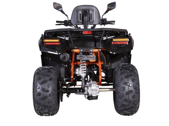 Квадрицикл KAYO AU300 Carb 2024 – отличный вариант для внедорожного экстрима с мощным двигателем, энергоёмкой подвеской и агрессивным дизайном.Квадрицикл оснащён одноцилиндровым 4-тактным двигателем LONCIN (LXCVT300) с вертикальным расположением цилиндра и жидкостным типом охлаждения. Двигатель имеет объём 271 см³ и обеспечивает мощность 23 л.с. На сегодняшний день AU300 является самым мощным утилитарным квадрициклом в модельном ряду KAYO.Карбюраторная система подачи топлива обеспечивает бесперебойную работу техники, лёгкость в обслуживании, а также неприхотливость к качеству топлива. Жидкостная система охлаждения с увеличенным радиатором не допустит перегрева мотора даже при самых жёстких условиях эксплуатации.Модель оснащена вариаторной коробкой передач со схемой L-H-N-R. Вариатор имеет понижающую передачу, незаменимую для жёсткого офф-роуда. Использование карданной передачи на заднюю ось обеспечивает непревзойдённый уровень надёжности.На квадрицикле используются колёса диаметром 10 дюймов. Энергоёмкая длинноходная подвеска позволяет адаптироваться к неровностям дороги и обеспечивает плавное и комфортное вождение на любых типах покрытий, а увеличенная ширина колеи добавляет аппарату устойчивости и проходимости. Спереди установлена независимая подвеска с двойным А-образным рычагом и длиной амортизатора 360 мм. Сзади используется маятник с длиной амортизатора 450 мм. Эффективное замедление с любых скоростей обеспечивают гидравлические дисковые тормоза спереди и сзади.Рама квадрицикла выполнена из хроммолибденового сплава – лёгкого и прочного материала, обеспечивающего отличную жёсткость и защиту от повреждений. Уровень безопасности повышает штатный датчик присутствия. На квадрицикле имеются передний и задний багажники, а также установлен фаркоп с розеткой для подключения прицепа. Благодаря наличию ПТС квадрицикл можно поставить на учёт, чтобы ездить по дорогам общего пользования. Ёмкость топливного бака 12 литров.Габариты 1900х1020х1010 мм, вес 300 кг. Колёсная база 1230 мм, высота по седлу 830 мм.