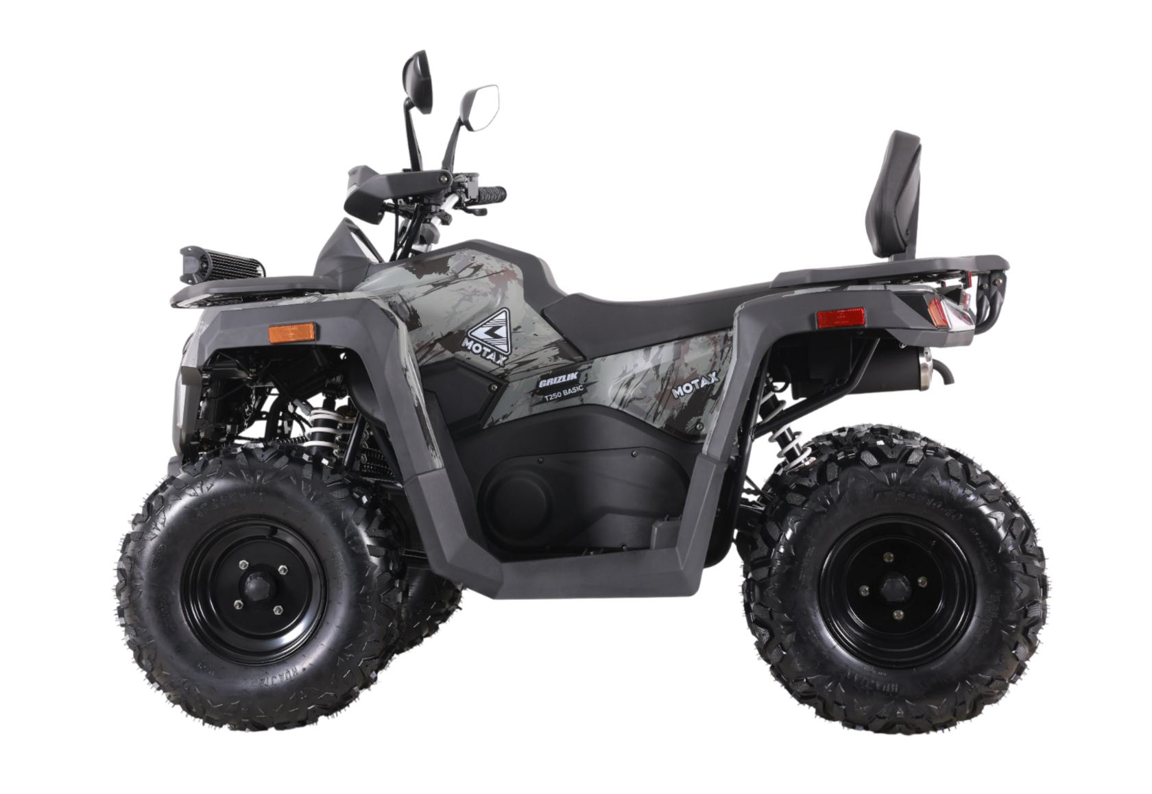 Квадроцикл MOTAX GRIZLIK T250 BASIC — это идеальный выбор для тех, кто ищет надежное и мощное транспортное средство для активного отдыха. С бензиновым 4-х тактным двигателем объемом 200 см³ и мощностью 16,9 л.с., он обеспечивает отличную производительность на различных типах местности.