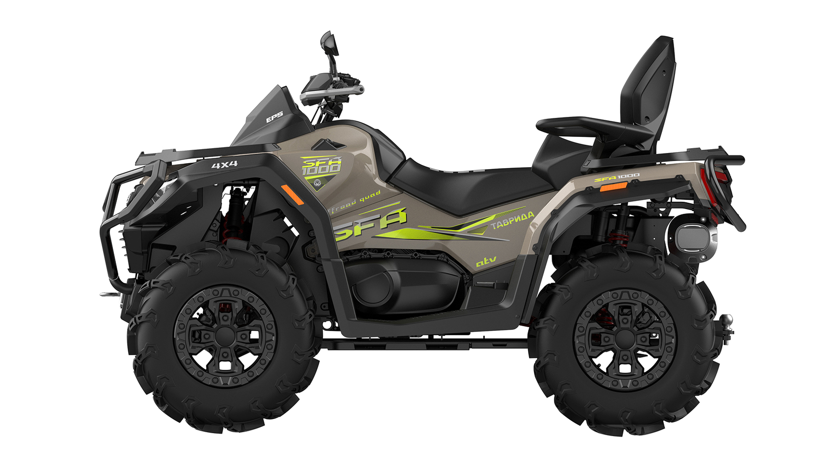 «ТАВРИДА SFA 1000» – новый современный двухместный российский квадроцикл, оснащённый литровым двигателем мощностью 95 л.с., созданный для тех, кто ценит динамику, силу и маневренность, хочет получить максимальные эмоции от управления совершенной техникой.При создании и производстве квадроцикла применены новейшие технологии, которые обеспечивают современный уровень качества и максимальную безопасность эксплуатации весь период срока службы квадроцикла.«ТАВРИДА SFA 1000» подходит как для опытных райдеров, так и для новичков, что делает его универсальным выбором. Квадроциклы «ТАВРИДА SFA 1000» демонстрируют отличную проходимость в российских суровых условиях, благодаря независимой подвеске, высокому дорожному просвету и шинам, которые обеспечивают надежное сцепление с грунтом.Выбирая «ТАВРИДА SFA 1000», Вы выбираете качество и уверенность.Двигатель 976 см³, 95 л.с.Оснащённый современным инжекторным двигателем, квадроцикл демонстрирует отличную динамику и уверенную тягу в любых условиях.– Экономичный расход топлива