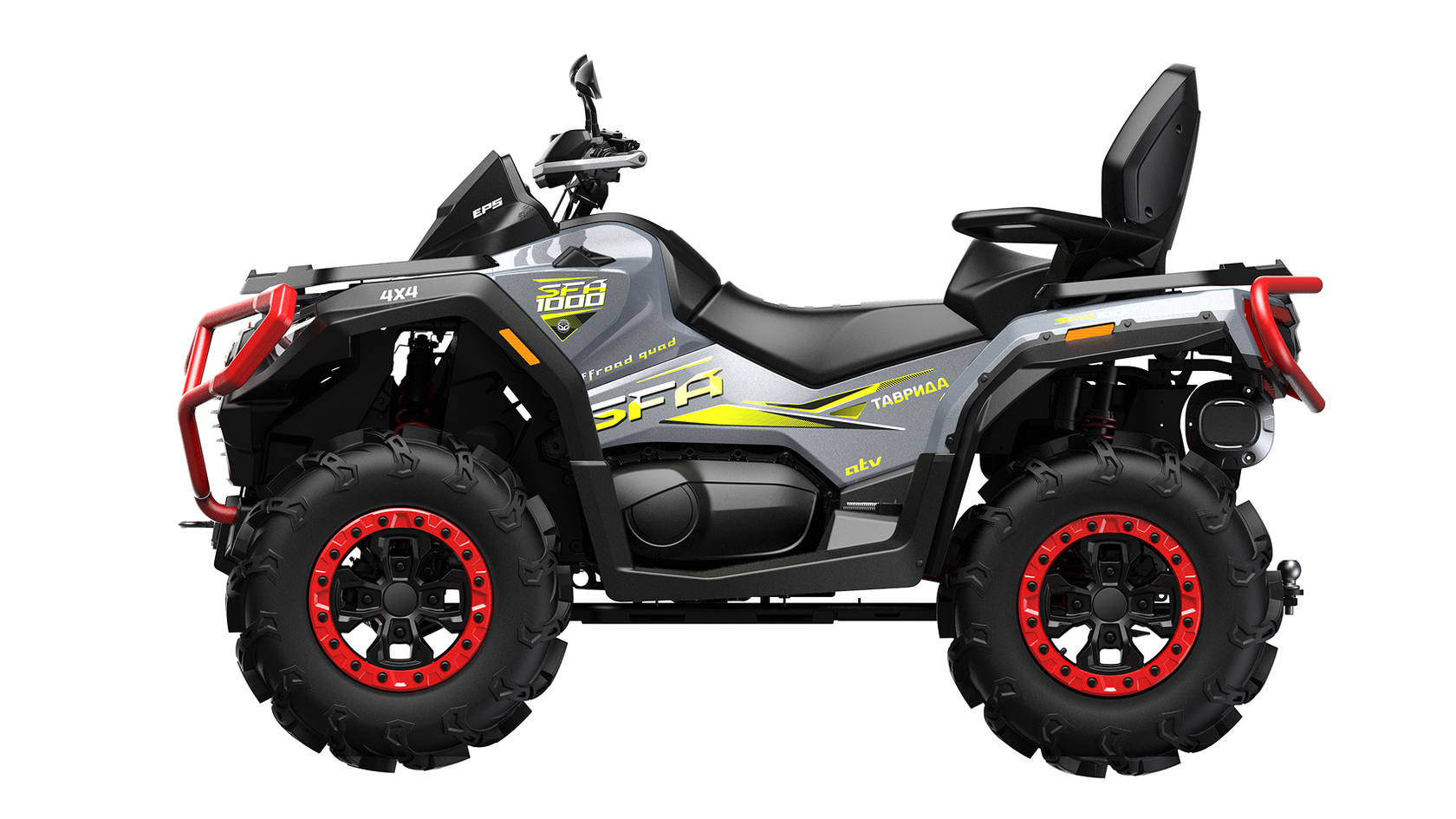 «ТАВРИДА SFA 1000» – новый современный двухместный российский квадроцикл, оснащённый литровым двигателем мощностью 95 л.с., созданный для тех, кто ценит динамику, силу и маневренность, хочет получить максимальные эмоции от управления совершенной техникой.При создании и производстве квадроцикла применены новейшие технологии, которые обеспечивают современный уровень качества и максимальную безопасность эксплуатации весь период срока службы квадроцикла.«ТАВРИДА SFA 1000» подходит как для опытных райдеров, так и для новичков, что делает его универсальным выбором. Квадроциклы «ТАВРИДА SFA 1000» демонстрируют отличную проходимость в российских суровых условиях, благодаря независимой подвеске, высокому дорожному просвету и шинам, которые обеспечивают надежное сцепление с грунтом.Выбирая «ТАВРИДА SFA 1000», Вы выбираете качество и уверенность.Двигатель 976 см³, 95 л.с.Оснащённый современным инжекторным двигателем, квадроцикл демонстрирует отличную динамику и уверенную тягу в любых условиях.– Экономичный расход топлива