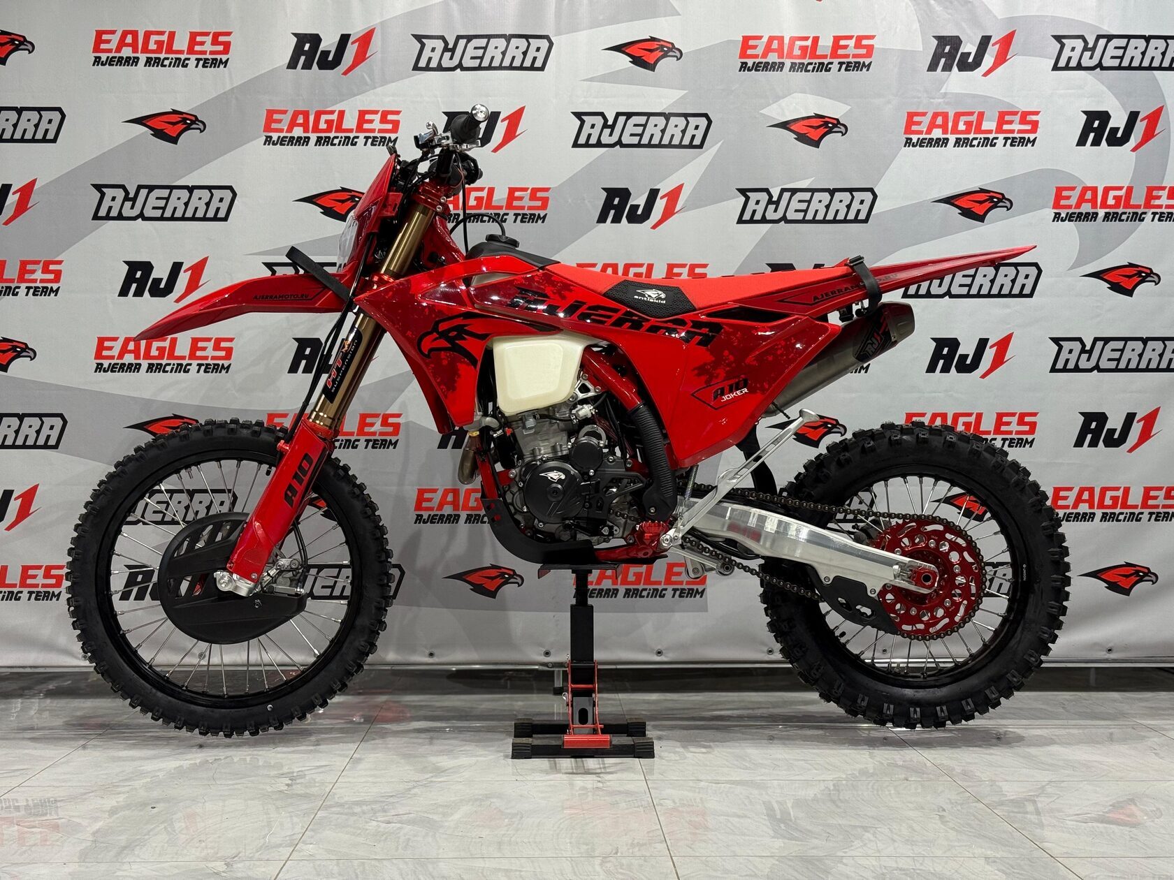 Мотоцикл AJERRA JOKER A10 YBS 300 — это современный эндуро нового поколения, созданный для тех, кто ценит сочетание мощности, управляемости и надёжности. Его сердце — двигатель Loncin 176FM YBS FM с водяным охлаждением, обеспечивающий стабильную работу даже при высоких нагрузках. Благодаря точной настройке и системе зажигания CDI мотор демонстрирует уверенную тягу и отличную отзывчивость на газ. Конструкция мотоцикла выполнена по образцу флагманских моделей KTM. Рама К10 от завода AJ1 — это точная копия KTM 2024 года, обеспечивающая прочность и устойчивость при езде по бездорожью. Пластик выполнен в стиле GAS-GAS 2024, придавая модели современный и спортивный облик. Подвеска — одно из сильных мест JOKER A10. Спереди установлена вилка HTW SCC длиной 930 мм с одним картриджем, а сзади — амортизатор HTW 2450, обеспечивающий отличную отзывчивость и стабильность на неровностях. Фрезерованные траверсы AJ1 2024, алюминиевая прогрессия и маятник делают конструкцию лёгкой, но прочной — идеальной для активного эндуро. Мотоцикл оснащён карбюратором Nibbi Racing PWK 34 Black, который обеспечивает точную подачу топлива и стабильную работу на любых оборотах. Тормозная система AJ1 с вентилируемыми дисками спереди и сзади гарантирует надёжное торможение, а усиленные обода 7116 UNISON и фрезерованные ступицы повышают устойчивость и долговечность конструкции. Из деталей — всё на уровне профессиональной техники: руль AL7075, алюминиевая звезда AL7075 51, цепь KMC 520 Pro, подножки AJ1 2025 (копия S3) и современная выхлопная система AJ1 2025. Каждая деталь продумана для лёгкости, прочности и надёжности. Электрооборудование включает в себя яркий свет 2 EYE LED Generation 4 (50W), литиевый аккумулятор Skyrich, цифровую приборную панель (копия KTM 2024), а также защиту мотора и рамы. Есть счётчик моточасов, заглушки руля, стропы и антискользящее сиденье AntiSkid — всё, что нужно для полного контроля над мотоциклом.. С высотой по седлу 94 см модель подойдёт для опытных райдеров, которые ищут технику с гоночным духом и максимальной управляемостью. AJERRA JOKER A10 YBS 300 — это мощь, стиль и надёжность, созданные для настоящих энтузиастов эндуро. Он дарит чувство свободы, уверенности и азарта в каждом километре..