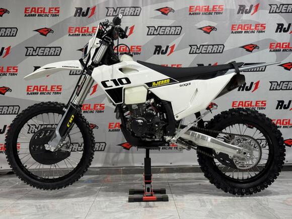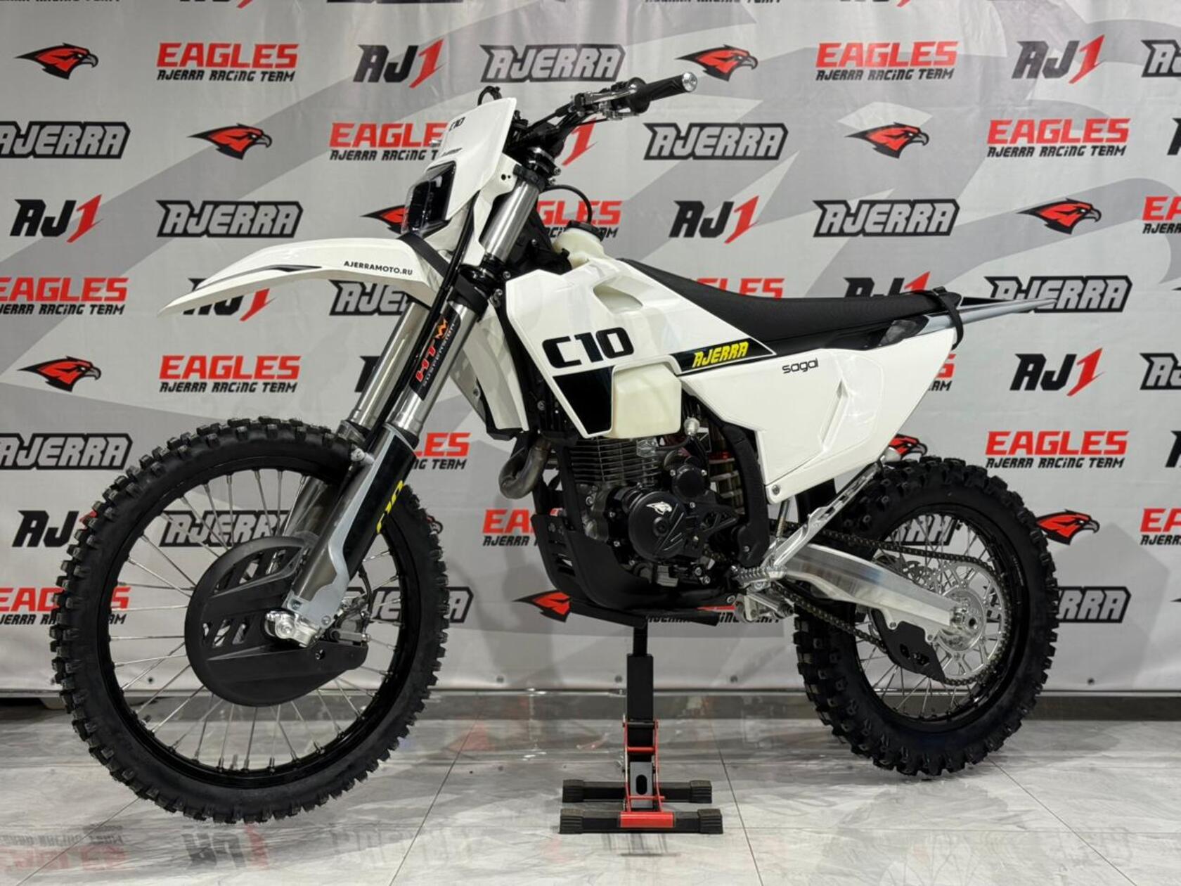 Мотоцикл AJERRA SAGAI C10 YB300H — это современный эндуро-байк, разработанный для уверенной езды как по пересечённой местности, так и по лёгкому бездорожью. Прочная рама К10 завода AJ1, копия KTM 2024 года, обеспечивает стабильность и точность управления в любых условиях, а качественный пластик в стиле Husqvarna 2024 года добавляет динамичный и стильный внешний вид. Двигатель Loncin YB300H 176 FMN с воздушным охлаждением демонстрирует надёжную работу, стабильную тягу и простоту обслуживания. В сочетании с карбюратором Nibbi Racing PWK 34 Black он обеспечивает точную подачу топлива и отзывчивость на газ, что делает мотоцикл удобным для активной езды и тренировок. Подвеска модели тщательно продумана: передняя вилка HTW SCC 930 мм с одним картриджем и задний амортизатор HTW 2450 с прогрессией гарантируют плавность хода и контроль над мотоциклом на неровных поверхностях. Алюминиевый маятник и фрезерованные траверсы AJ1 2024 повышают прочность конструкции и долговечность техники. Эргономика и управление на высоте: усиленный руль AL7075, алюминиевые подножки AJ1 2024 (копия S3), ручка газа Nibbi и грипсы Lock ON обеспечивают комфорт и надёжность в любых условиях. Светодиодная оптика 2 EYE LED Generation 4 (50W) позволяет безопасно ездить даже в сумерках, а алюминиевые обода UNISON 7116 и фрезерованные ступицы повышают прочность колёсной базы. Мотоцикл оборудован цепью KMC 520 Pro, алюминиевой ведомой звездой AL7075 51 зуб, а также выхлопной системой AJ1 2025, что делает его управляемым и надёжным при любых нагрузках. Для удобства и защиты техники предусмотрены счётчик моточасов, защита рамы и мотора, стропы передние и задние, заглушки руля. Сиденье AntiSkid обеспечивает комфортную посадку и предотвращает скольжение. Высота по седлу составляет 940 мм, что делает AJERRA SAGAI C10 YB300H удобным для райдеров среднего и высокого роста. Этот мотоцикл сочетает в себе высокотехнологичные комплектующие, надёжность и стильный дизайн, подходя как для спортивных покатушек, так и для любительского эндуро..