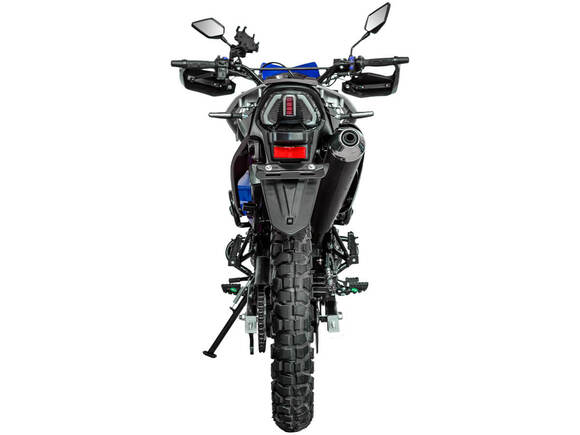 Одноцилиндровый 4-тактный двигатель ZONGSHEN PR300/ZS175FMM-5 имеет объём 271 см³ и выдаёт мощность в 24 л.с. Для поддержания оптимальной температуры двигателя используется воздушное охлаждение. За подачу топлива отвечает карбюратор PZ30. Он обеспечивает бесперебойную работу в самых жёстких условиях, прост в обслуживании и неприхотлив к качеству топлива. Коробка передач с 6 ступенями имеет классическую схему 1-N-2-3-4-5-6. Объём топливного бака 13 литров. Запуск двигателя осуществляется с помощью электростартера.На мотоцикл установлены спицованные колёса диаметром 21 дюйм спереди и 18 дюймов сзади. Передняя подвеска представлена телескопической вилкой перевёрнутого типа с ходом 124 мм, а сзади используется моноамортизатор с ходом 45 мм. В паре они позволяют эффективно амортизировать удары и поглощать избыточные вибрации при езде по бездорожью. За торможение отвечает дисковая гидравлическая система.Габариты 2100x785x1170 мм. Колёсная база 1360 мм. Высота по седлу 875 мм. Вес 118 кг.Мотоцикл имеет ПТС и все необходимое для поездок по дорогам общего пользования. Для освещения используется яркая LED-оптика. На дугах установлен дополнительный свет, повышающий площадь освещения дороги и улучшающий видимость.
