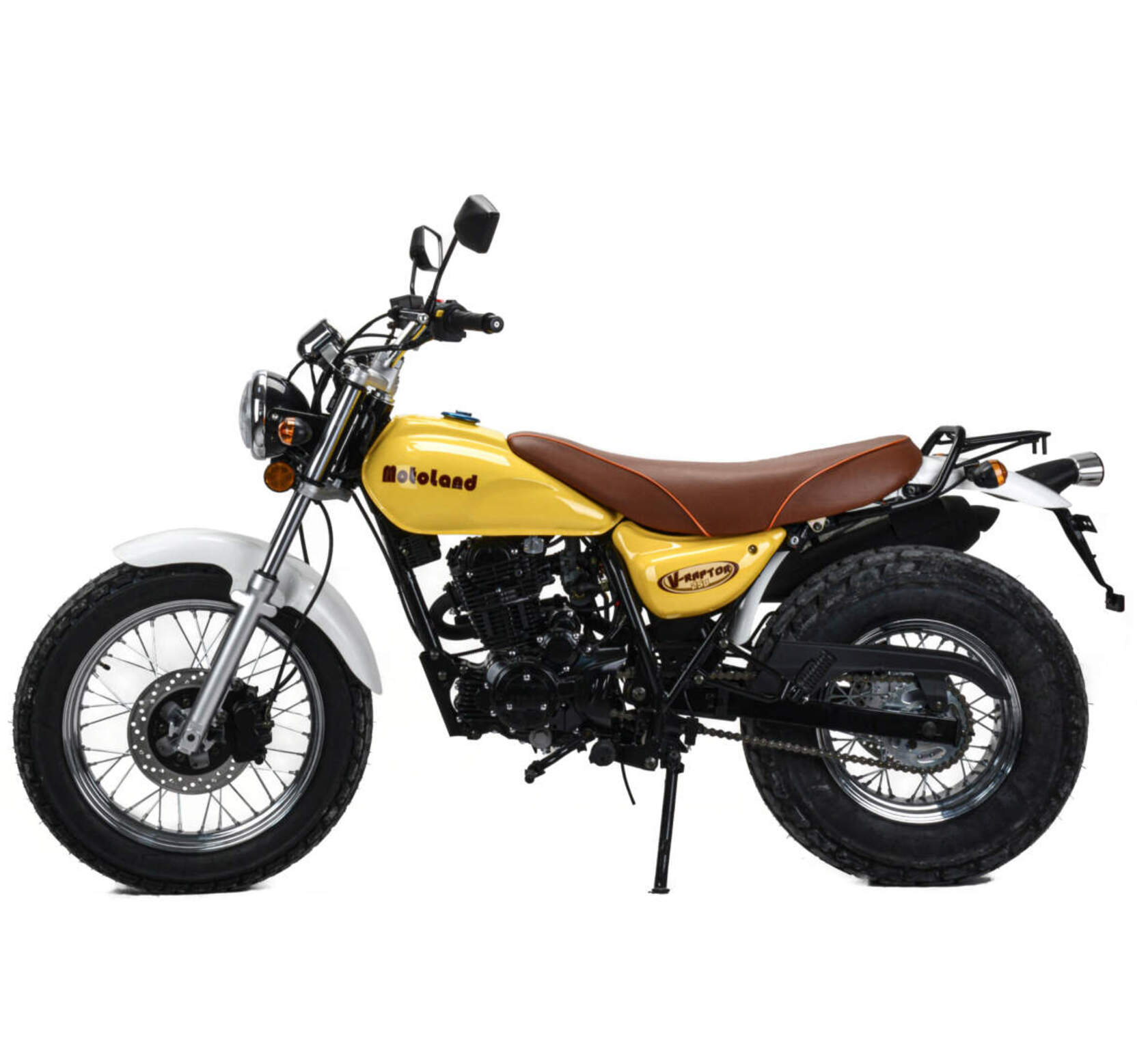 Классический дорожный мотоцикл от Motoland - снова в продаже. Идеален как для города, так и бездорожья. Вездеходные шины, с глубоких протектором, имеют увеличенное пятно контакта. Мотоцикл прекрасно держит дорогу. Двигатель укомплектован по европейскому образцу.Стальная рама, объем топливного бака 9 литров. Расход топлива 3 л. на 100кмОдноцилиндровый четырехтактный двигатель с балансирным валом - 172FMM CBB250 Zongshen. Система подачи топлива карбюратор. Трансмиссия механическая, шестиступенчатая.Подвеска передняя: Телескопическая. Подвеска задняя: моноамортизаторКолесные диски спицованные, размер колес — 18/14 дюймов.Зеркала, крепление под номер, подножки второго пассажира. Тормоза дисковые. Очень удобное седло. Фара, электростартер, замок зажигания, АКБ, поворотники, стоп-сигнал, электромеханическая приборная панель.Дополнительно, для России установлен масленый радиатор охлаждения двигателя. Мотоцикл легок в управлении и прекрасно подойдет, как в качестве первого городского, так и для покатушек по лесу и пересеченной местности.