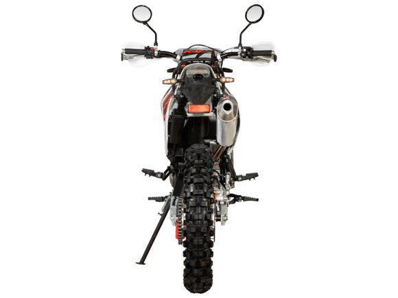 Мотоцикл KAYO T1 300 Enduro 21/18 2025 ПТС – надёжный и производительный эндуро, готовый встретить вызовы внедорожных трасс.Оснащён 4-тактным двигателем объёмом 271 см³ с верхним распредвалом и воздушным типом охлаждения. Максимальная мощность в 24 л.с. развивает при 8500 об/мин, а максимальный крутящий момент 22 Нм при 6500 об/мин. За подачу топлива отвечает карбюратор PD30. Он обеспечивает плавность хода, топливную экономность и бесперебойную работу двигателя даже в самых жёстких условиях. Соотношение диаметра цилиндра и хода поршня 75,0х61,4. Степень сжатия 9,29:1. Запуск двигателя осуществляется с помощью электростартера или кикстартера. Тип зажигания CDI. Снизу установлена пластиковая защита двигателя.Механическая коробка передач имеет 5 ступеней. Привод цепной. Объём топливного бака 9 литров.На мотоцикл установлены спицованные колёса с алюминиевыми ободами, алюминиевыми ступицами и буксаторами. Обуты во внедорожные покрышки YUANXING 80/100-21 и 110/100-18.Длина подвески спереди 880 мм, длина задней подвески 380 мм. Задняя подвеска оснащена прогрессией. Траверсы выполнены из литого алюминия, а прогрессия – из стали. За торможение отвечают дисковые гидравлические тормоза.Прочная рама и маятник выполнены из стали. Мотоцикл имеет ПТС и оснащён всем необходимым для поездок по дорогам общего пользования: диодная светотехника (яркая фара, поворотники, стоп-сигнал), звуковой сигнал, цифровая приборная панель, зеркала заднего вида.Для управления установлен руль переменного сечения 28 мм Fatbar со стандартными рычагами сцепления и тормоза, на который установлена алюминиевая защита рычагов с широкими ветрозащитными щитками. Имеется платформа для перевозки грузов и дополнительные подножки для поездок с пассажиром.Габариты мотоцикла 2100х810х1180 мм, вес 119 кг. Клиренс 340 мм, колёсная база 1420 мм, высота по седлу 900 мм.