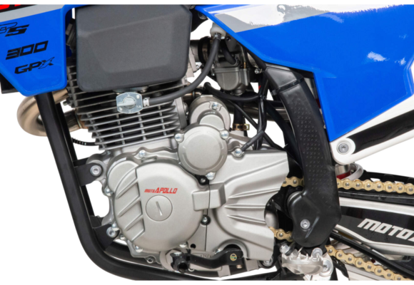 Moto Apollo F3 300 в этой конфигурации — это настоящий спортивный кросс, созданный без компромиссов для тех, кто живёт скоростью, прыжками и гонками по бездорожью. Несмотря на маркировку двигателя 175FMM, его реальный рабочий объём — 300 см³, а мощность составляет 25 лошадиных сил. Воздушное охлаждение, отсутствие балансирного вала и цепной привод ГРМ обеспечивают классическую кроссовую надёжность, минимальный вес и высокую ремонтопригодность прямо на трассе.