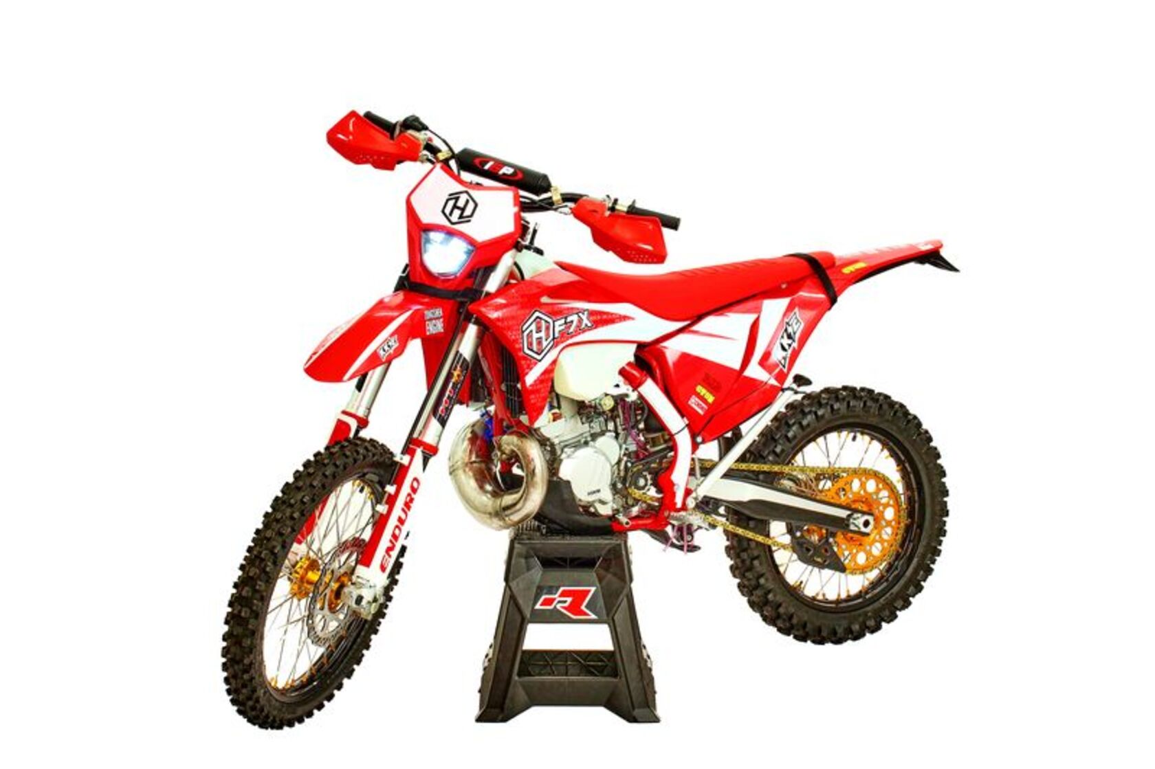 Мотоцикл оснащен 2-х тактным двигателем Koshine 320 см3Мотоцикл Hasky F7X — идеальное соотношение мощности и веса. Мотоцикл с двигателем на 44 лс, сухой вес 106кг. Двигатель копия КТМ 2017г, подвески HTW, обода excel. Идеальный байк для демонстрации качественного результата в эндуро гонках любой сложности.