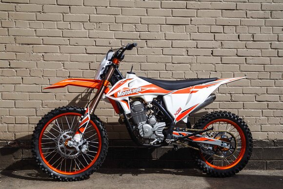 Представляем вам мотоцикл Motoland 250 SX250 . Он подойдет для новичков в мотокроссе и участников любительских соревнований. Колеса диаметром 21/18 идеально подходят для езды по бездорожью, а также по мягкому и средней жесткости грунту. Подвеска GPX позволяет с легкостью преодолевать ухабы, ямы и другие неровности. Мотоцикл оснащен LCD- приборной панелью, прямоточным глушителем, механической пятиступенчатой коробкой передач и двигателем ZONGSHEN 172FMM-3А мощностью 21 лошадиная сила, который способен развивать скорость до 120км/ч. За счет формы, дизайна и цвета пластика SX250 модель внешне похожа на мотоциклы марки KTM. У нас Вы можете купить этот мотоцикл с бесплатной доставкой по РФ и гарантией до года. Также его можно приобрести в рассрочку или в кредит.