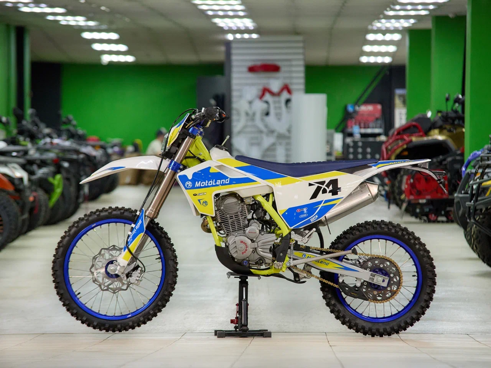 MotoLand TT 250 Новинка весны 2020 года. Теперь с ПТС.Надёжная техника из самых популярных компонентов оснащена Двигателем ZONGSHEN 172FMM с кикстартером и электростартером Мощностью 21 Л.С. на двигателе установлен Карбюратор NIBBI PE28.Это полноразмерный кроссовый мотоцикл его база по осям составляет 1430 мм., и габаритами 2180х800х1300 мм. Высота по седлу составляет 950 мм., что по сравнению с Моделью XT 250 ST 21/19 ниже порядка 20 мм. Что позволяет комфортно себя чувствовать райдерам среднего роста.За счет сбалансированной базы мотоцикл имеет отличную управляемость, а конструкция рамы и особенности настройки подвески GPX способствуют максимальному поглощению неровностей дорожного покрытия, а так же усиленная прогрессия на игольчатых подшипниках.Алюминиевые обода c антибуксаторами, усиленными спицами и ступицами CNC. На кроссовой резине Yuanxing 80/100-21 / 100/90-18На мотоцикле установлена обновлённая тормозная система аналог «brembo» с медными колодками , что обеспечивает отличные тормозные характеристики. Особенностью заднего тормоза является, лапка верхнего расположения с эксцентриковой регулировкой.Выпускной патрубок с резонатором Power Bomb имеет крепления на пружинах для снижения вибрации. Глушитель с уникальным дизайном прямоточного типа, полностью алюминиевый для облегчения веса.