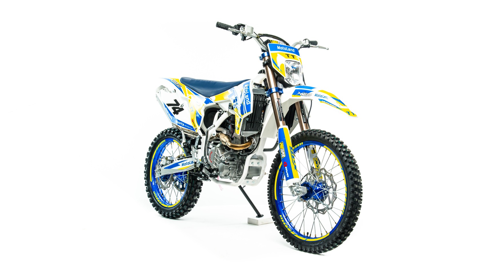 MotoLand TT 300 Новинка осени 2020 года.Надёжная техника из самых популярных компонентов оснащена Двигателем ZONGSHEN 174FMM с кикстартером и электростартером Мощностью 24 Л.С. на двигателе установлен Карбюратор NIBBI .Это полноразмерный кроссовый мотоцикл его база по осям составляет 1430 мм., и габаритами 2180х800х1300 мм. Высота по седлу составляет 950 мм., что по сравнению с Моделью XT 250 ST 21/19 ниже порядка 20 мм. Что позволяет комфортно себя чувствовать райдерам среднего роста.За счет сбалансированной базы мотоцикл имеет отличную управляемость, а конструкция рамы и особенности настройки подвески GPX способствуют максимальному поглощению неровностей дорожного покрытия, а так же усиленная прогрессия на игольчатых подшипниках.Алюминиевые обода c антибуксаторами, усиленными спицами и ступицами CNC. На кроссовой резине Yuanxing 80/100-21 / 100/90-18На мотоцикле установлена обновлённая тормозная система аналог «brembo» с медными колодками , что обеспечивает отличные тормозные характеристики. Особенностью заднего тормоза является, лапка верхнего расположения с эксцентриковой регулировкой.Выпускной патрубок с резонатором Power Bomb имеет крепления на пружинах для снижения вибрации. Глушитель с уникальным дизайном прямоточного типа, полностью алюминиевый для облегчения веса.