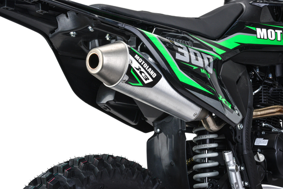 Мотоцикл MotoLand X3 300 PRO EFI предназначен для езды по бездорожью и соревнований по мотокроссу. Имеет хорошую проходимость, прекрасно ведёт себя на песке и грунте,и подходит для асфальтовых дорог. Оснащён двигателем ZS 175 FMM-2 FMI с балансир. валом и электронным впрыском топлива, мощностью 24 л. с.разгоняется до 120 км/ч. Выхлопная система с резонатором "Рowerbomb", который увеличивает мощность на низких оборотах. Еще одна из лучших моделей кроссовых мотоциклов по соотношению цены и качества.Отлично подойдет для людей со средним уровнем катания, а также для райдеров с ростом выше среднего.Визитной карточкой мотоцикла является современный дизайн, рама из Cr-Mo труб, обладающей высокими прочностнымихарактеристиками, современной подвеской FASTACE.Прочный и облегченный обод из сверхпрочного двухслойного алюминиевого сплава выдерживает высокие ударные нагрузкиЛитые алюминиевые ступицы и усиленные спицы предназначены для экстремальной езды. LED оптика с возможностью переключения ближний