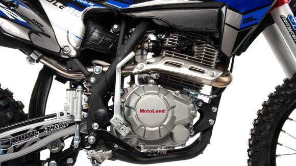 Обновлённая модель XT250 HS в новом цвете!Это средне размерный мотоцикл, с уменьшенным весом и достойной динамикой. Установлен двигатель 172 FMM c мощностью 21 л.с. Коробка передач механическая, пятиступенчатая. Карбюратор NIBBI PE 30 оснащен резиновым патрубком, что обеспечивает хорошее снижение вибрации.Большой ход подвесок для комфортного передвижения по пересеченной местности, которые также позволяют ехать быстро и агрессивно. Надёжные литые траверсы и мощные телескопические амортизаторы GPX Professional перевёрнутого типа, оснащенные клапанами, для стравливания избыточного давления, что позволяет значительно повысить ресурс работы сальников. Мотоцикл больше предназначен для езды по пересеченной местности, чем для города, из-за профиля резины. Маневренный, удобный и прост в обслуживании, подходит мотолюбителям любого возраста и опыта вождения. Руль GPX переменного сечения. Сиденье выполнено с противоскользящим покрытием. Антибуксаторы на переднем и заднем колесе для драйва на пониженном давлении и защиты от смещения камеры.Выхлопная система GPX Racing. Быстрый доступ к воздушному фильтру для комфортного обслуживания. Обновленная тормозная система с надёжными двух поршневыми суппортами на переднем и заднем колесе. Ступицы CNC фрезерованные, алюминиевые. Кроссовая резина 80/100 "21 и 110/100 "18 с мощными грунтозацепами обеспечивают превосходное сцепление с грунтом и позволяют контролировать управляемость. Motoland XT 250 HS оснащён отличной галогеновой фарой головного света. Так же в комплекте есть щиток для номера, который ставится вместо фары при необходимости.Система зажигания электронная (CDI). Запуск двигателя комбинированный ножным кикстартером и электростартером. Цвет синий