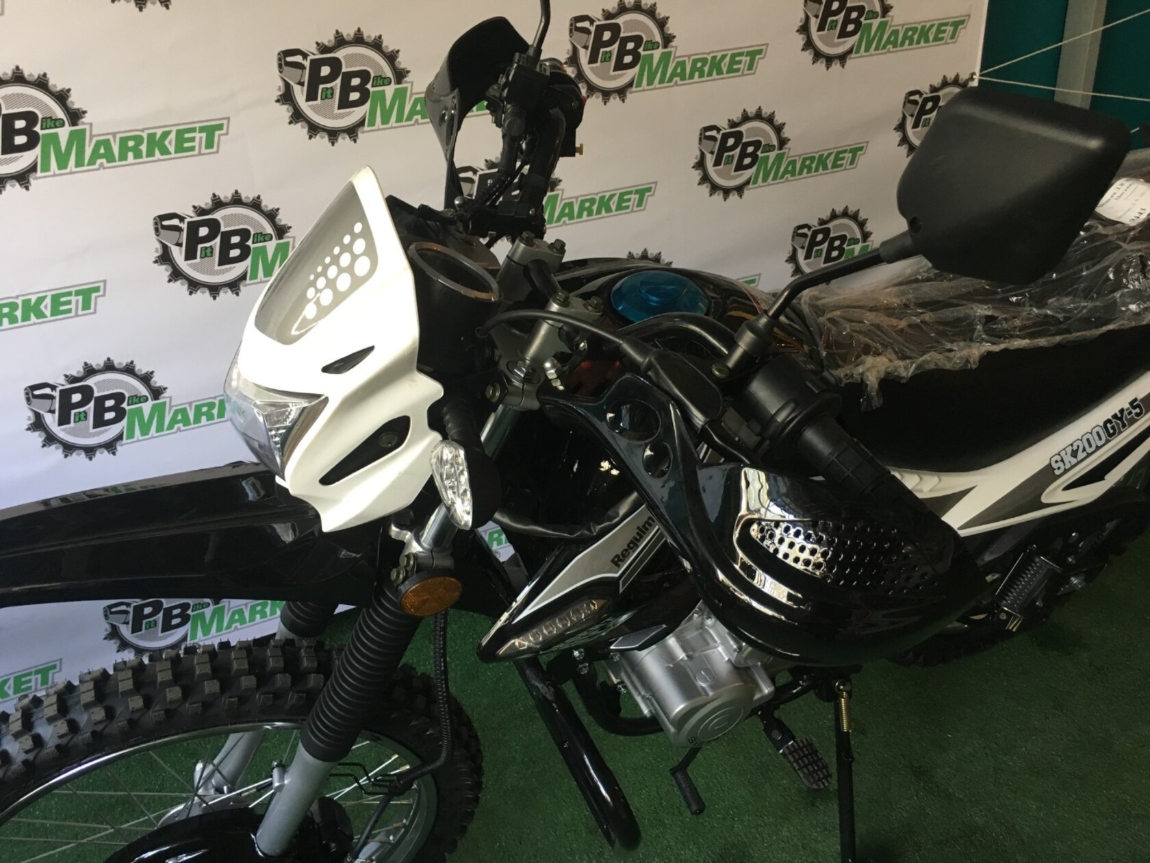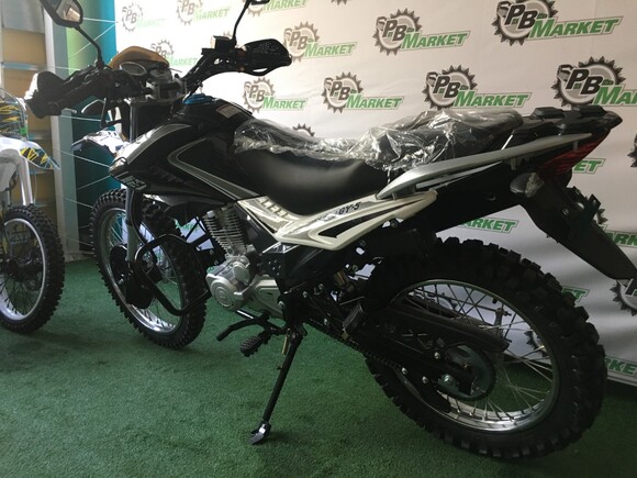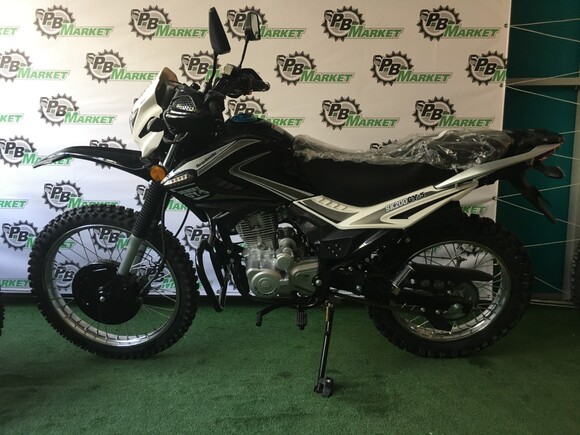 Regulmoto SK 200GY-5 – мотоцикл двойного назначения, созданный для эксплуатации как на дорогах общего пользования, так и на легком бездорожье. Топовая модель линейки лайт-эндуро мототехники известного китайского производителя Senke отличается высокой надежностью повседневной эксплуатации, отсутствием сложностей в сервисном обслуживании, простотой и легкостью управления.В надежной раме с защитными дугами Regulmoto SK 200GY-5 установлен 4-тактный одноцилиндровый двигатель с рабочим объемов в 20 см3, демонстрирующий максимальную мощность в 13.6 л.с. Мотор с воздушным охлаждением, в котором можно без труда признать реплику двигателя известного японского производителя, оснащается балансировочным валом, что позволяет избавиться от излишней вибрации.Подвеска мотоцикла на колесах 21/18 дюймов со стальными ободьями представлена телескопической вилкой-перевертышем спереди, перья которой закрыты защитой, и стальным маятником с моноамортизатором сзади. Тормоза у мотоцикла дисковые, спереди установлен 4-поршневой суппорт, сзади – 2-поршневой.Оснащение Regulmoto SK 200GY-5 соответствует возлагаемым на мотоцикл эксплуатационным задачам: на байке вполне комфортно передвигаться по дорогам и легкому бездорожью, чему способствуют достаточно большой ход амортизаторов, защита цепи, пластиковая защита рук. Среди установленного оборудования присутствуют: аналоговая приборная панель, замок зажигания с защитой от попадания песка и пыли, полный комплект светового оборудования с дополнительными светодиодными поворотниками, встроенными в боковые обтекатели, зеркала заднего вида, стояночная и центральная подножки.Данная модель мотоцикла присутствует на отечественном рынке мототехники уже достаточно длительное время, за которое мотоцикл зарекомендовал себя легким в эксплуатации и неприхотливым в обслуживании аппаратом. О высокой надежности мотоцикла говорят солидный километраж пробегов при отсутствии серьезных неисправностей и позитивные отзывы обладателей Regulmoto SK 200GY-5.У нас Вы можете купить этот мотоцикл с бесплатной доставкой по РФ и гарантией до года. Также его можно приобрести в рассрочку или в кредит.