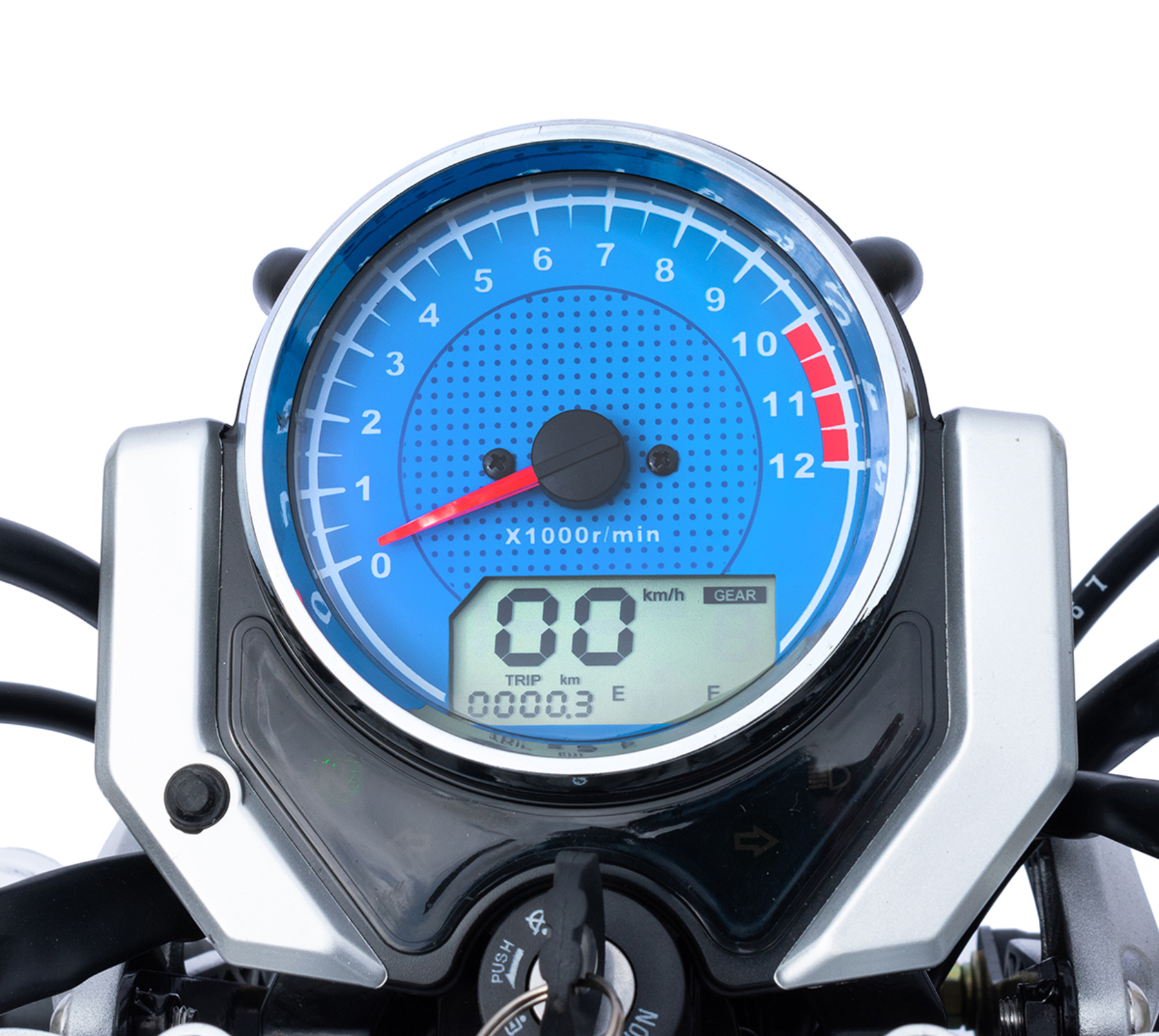 Мотоцикл Regulmoto SK 150-6 – классический «дорожник» с надежным и экономичным малокубатурным двигателем. Данная модель изготавливается на собственных мощностях крупного китайского производителя Senke, чья продукция пользуется заслуженной популярностью среди поклонников мототехники не только в Поднебесной, но и в странах Европы и Америки.Несмотря на классический внешний вид Regulmoto SK 150-8 отличается достаточно интересным и продуманным дизайном. В раме мотоцикла установлен одноцилиндровый 4-тактник с воздушным охлаждением с рабочим объемом в 149 см3. Двигатель можно запускать как кнопкой электростартера, так и при помощи традиционного кик-стартера. В целом байк выглядит лаконичным и современным – еще одной приметой актуальных трендов стали литые диски переднего 18-дюймового и заднего 16-дюймового колес. Также на переднем колесе установлен дисковый тормоз, хотя в ступице заднего колеса реализован проверенный многими десятилетиями вариант с тормозом барабанного типа. Характерная для «дорожников» подвеска представлена телескопической вилкой впереди и двумя амортизаторами сзади.Широкое комфортное сиденье и вместительный бак Regulmoto SK 150-8 недвусмысленно указывают на назначение мотоцикла, окончательную ясность вносят багажник, складывающиеся пассажирские подножки и наличие мощной центральной подножки. Безопасность эксплуатации на дорогах общего пользования обеспечивают обязательный комплект зеркал заднего вида и светового оборудования, включающего фару головного света, светодиодные поворотники и стоп-сигнал. Этот мотоцикл станет отличным выбором в качестве транспортного средства на каждый день и позволит своему обладателю с комфортом решать широкий круг повседневных задач.
