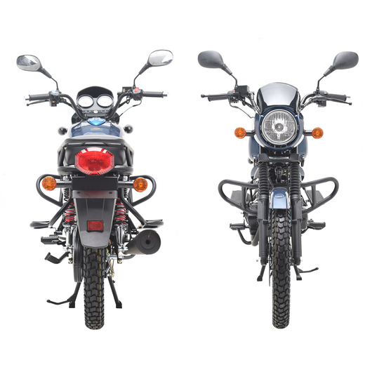 Несмотря на «классический» вид Regulmoto SK200, в комплектации мотоцикла используются современные стильные литые диски колес, световое оборудование на экономичных и долговечных светодиодах, электронное зажигание, ротор дискового тормоза на переднем колесе. Байк полностью готов к эксплуатации на ДОПах: кроме комплекта светотехники и удобной приборной панели, на руле мотоцикла также установлены зеркала заднего вида.