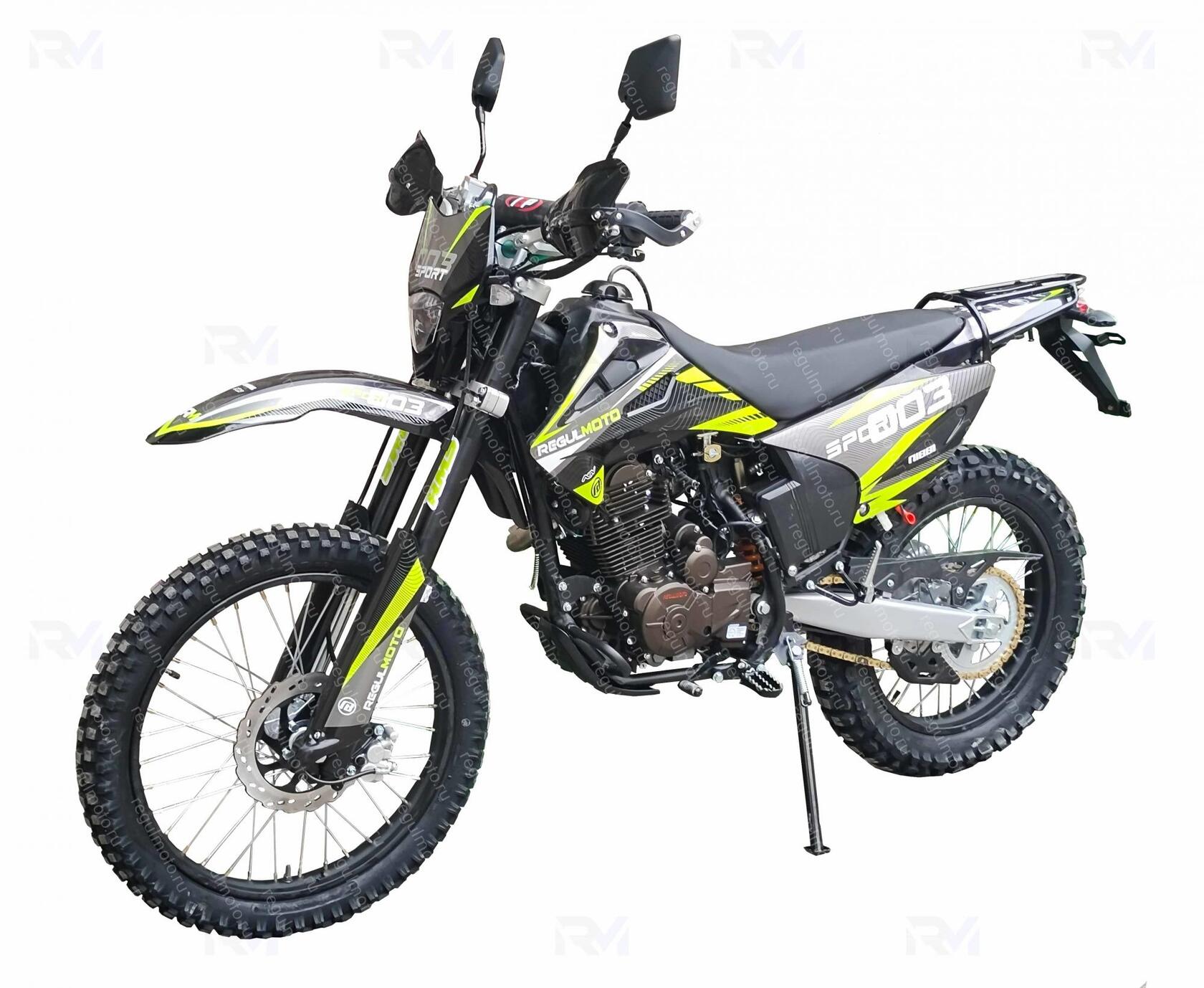 Regulmoto Sport-003 250 PR – обновленная версия одного из самых востребованных мотоциклов известного азиатского производителя ZF-KY. Доступный мотоцикл многоцелевого назначения в 2021 году получил ряд существенных изменений стоковой комплектации, которые положительным образом отразились на его техническом потенциале и возможностях повседневного использования.Опыт потребительской эксплуатации позволил Regulmoto Sport-003 продемонстрировать высокую надежность, простоту в управлении и неприхотливость в обслуживании этого современного мотоцикла. В раме обновленной модели байка теперь стоит более мощный одноцилиндровый 4-тактный двигатель объемом 250см3 ZS172-FMM-5 с воздушным охлаждением и 5-ступенчатой коробкой передач и балансирным валом.Мотор последнего поколения Zongshen PR 172FMM-5, работая вместе с вакумным карбюратором, способен развивать максимальную мощность до 21 лошадиной силы.Этот многоцелевой мотоцикл пользуется заслуженным признанием экспертов и поклонников офф-роада. Regulmoto Sport-003 250 PR станет оптимальным выбором для райдеров с опытом и благодаря наличию ПТС байк можно использовать как на ДОПах, так и на пересеченной местности.