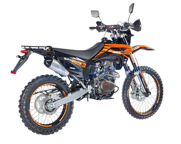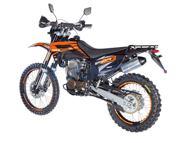 Мотоцикл Regulmoto Sport-003 PR PRO. - Двигатель 172, балансир, 300 поршевая Zongshen, алюминиевые обода, злая резина, новый пластик облицовки бензобака, колодки синтетика.Передние амортизаторы с быстрой регулировкой, 41мм. Алюминиевые диски из одного из самых прочных сплавов 7116. Из этого сплава производятся рули Renthal. Шины с увеличенными грунтозацепами, мягкий компаунд.