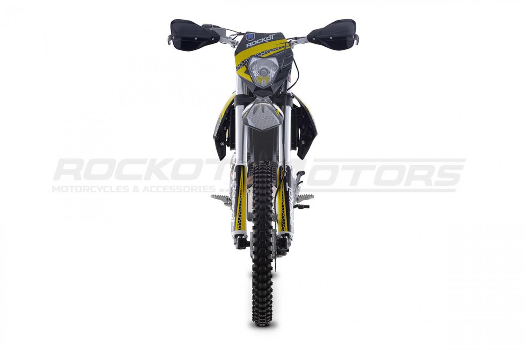 Мотоцикл ROCKOT R7 (HORNET) - полноразмерный эндуро мотоцикл. Он специально создан для райдеров, которые уже выросли из питбайка и хотят раздвинуть свои пределы. Он подойдет и начинающим эндуристам с ростом от 170 см. ROCKOT R7 идеально себя чувствует в лесных прохватах с преодолением различных препятствий благодаря небольшому весу, тяговитому двигателю и большим колесам 21/18. Мотоцикл максимально упрощен для большей надежности. Из электрики он снабжен лишь светодиодной фарой электростартером Пу сути в нем просто нечему ломаться, можно смело ездить в лесные мото походы на 40 - 200 км. Инженеры Rockot учли все ошибки конкурентов и снабдили мотоцикл качественными подвесками и алюминиевыми ободами. Был переработан узел верхнего крепления двигателя к раме, избавивший от повышенных вибраций. Ведомую звезду закрепили на 6 потайных болтов. Ну и не стали экономить на карбюраторе - в базе установлен NIBBI PE 30! Подведя итог можно смело заявить что R7 - идеальный выбор для тех, кто хочет купить бюджетный эндуро мотоцикл!У нас Вы можете купить этот мотоцикл с бесплатной доставкой по РФ. Также его можно приобрести в рассрочку или в кредит.