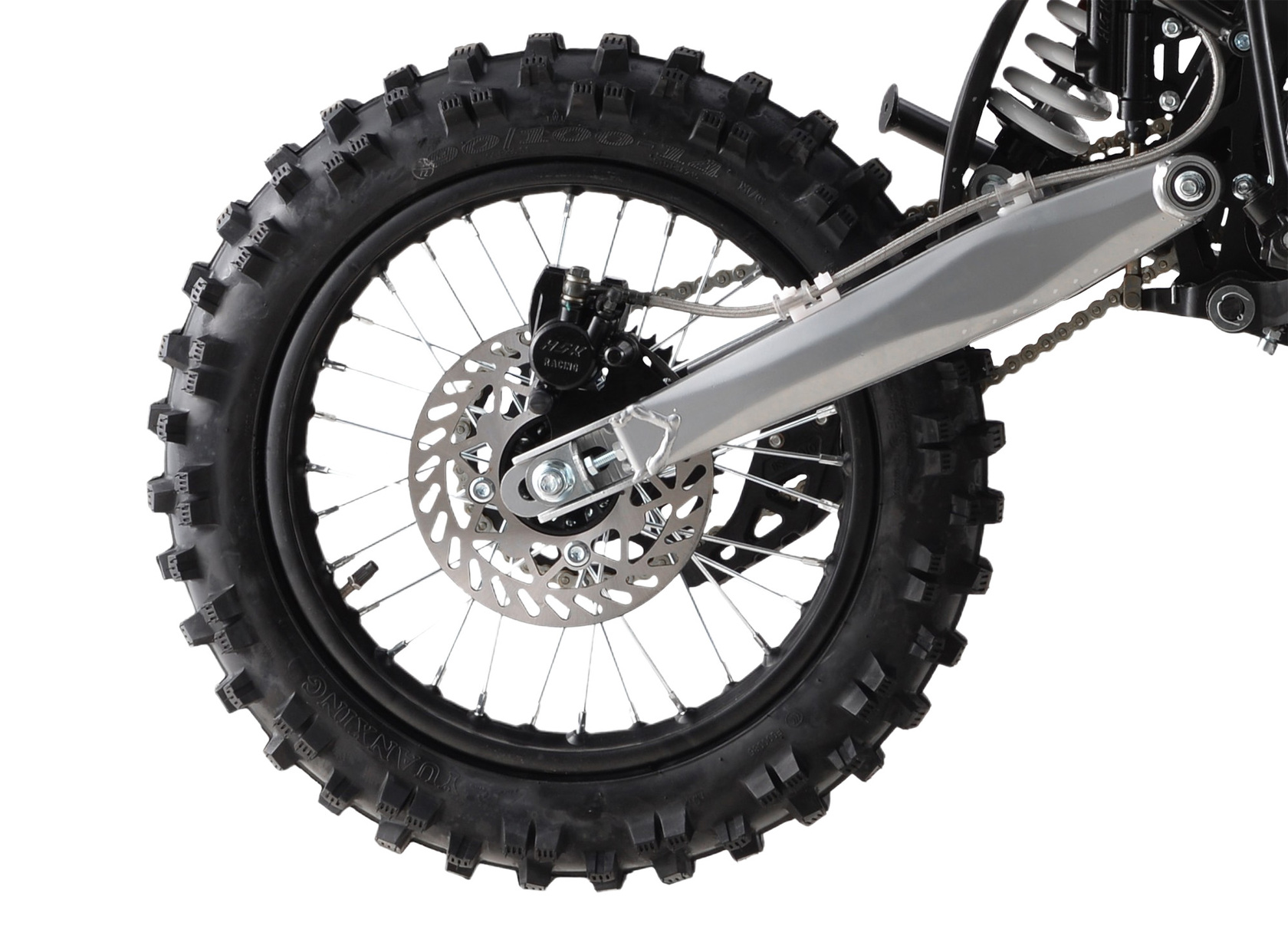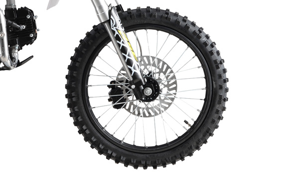 Питбайк BSE EX 125E MAX13 1.0 14/12 предназначен для активной и увлекательной езды на мотокроссах и отличается от аналогов в своем классе не только качеством, но и эксклюзивным дизайном от современного граффити-художника Max13 (Макс Торопов). Базой для этой модели стали шасси DX125, доказавшие надежность конструкции. На хроммолибденовой раме установлен 125-кубовый мотор Zonghshen, который производит максимально 10 л.с. Комбинируется он с простым в обслуживании и настройке карбюратором MIKUNI VM22, воздушным охлаждением и двумя типами запуска: кик- и электростартер.Мотоцикл получил также дисковые тормоза Mojo Racing с гидравлическим приводом и энергоемкую подвеску с вилкой-телескопом перевернутого типа. Дополненная усиленными колесными дисками и траверсами CNC комплектация наилучшим образом преодолевает неровности дороги. Для поездок в темное время суток востребованной станет мощная светодиодная фара.