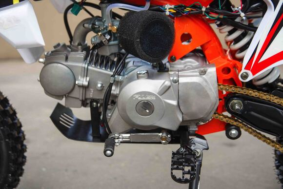 Представляем Вашему вниманию питбайк от молодого российского бренда Full Crew. Модель получила название FC125e 17/14. В ней собраны все ключевые моменты для покорения сердца питбайкера. Крепкая стальная рама, дисковые гидравлические тормоза, надежный и проверенный временем двигатель YX 125 с механической четырехступенчатой коробкой передач и фара. А самый огромный плюс – это демократичная цена и наличие электростартера на питбайке Full Crew FC125 17/14.