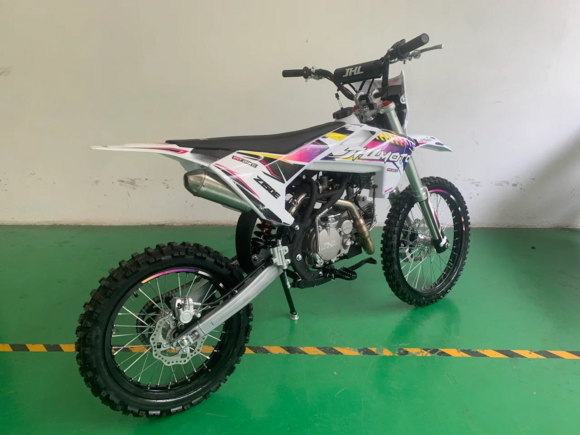 Найти в продаже питбайк, который подойдет по техническим характеристикам и стоимости, в наше время можно, не вставая с дивана. Мотоциклы и эндуро от известных брендов в широком ассортименте представлены в интернет-магазинах. Решая, какой купить спортивный мотоцикл, любители скорости выбирают популярные мопеды JHL, они считаются надежными и качественными мототранспортными средствами. Модель Z150E выделяется производительностью, простотой управления и ярким дизайном.Особенности питбайкаСреди популярных моделей от производителя JHL следует выделить кроссовые мотоциклы, которые отличаются достойными техническими характеристиками. Питбайки от китайского бренда не уступают мощным моделям в экстерьере и параметрах. Габариты и вес подобраны таким образом, что обеспечивают 100% маневренность на дороге. Качественные сварные швы металлических элементов позволяют мотоциклу выдерживать прыжки, преодолевать трамплины и выполнять сложные трюки.На модели установлен мощный мотор и усиленная подвеска для комфортного прохождения трассы. Питбайк JHL Z150E подходит и для любительских поездок по пересеченной местности, и для экстремальных соревнований. Задумываясь о том, какой мотоцикл лучше купить для новичка присмотритесь к этому двухколеснику. Среди его главных особенностей:рама из облегченного алюминиевого сплава;регулируемая амортизационная система;яркая оптика класса люкс;пластиковые детали.Преимущества JHLZ150EМодельный ряд китайского концерна JHL-moto отличается достойной комплектацией и низкими ценами. Чтобы ответить на вопрос, какой купить спортивный мотоцикл, следует изучить преимущества понравившегося байка. Модель Z150E обладает следующими достоинствами:несложное техническое обслуживание;доступные запчасти для ремонта;надежная конструкция;комфортное положение при езде;экономичный расход бензина;простое управление.