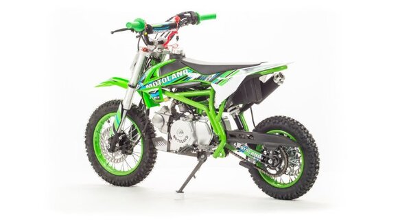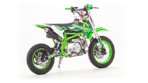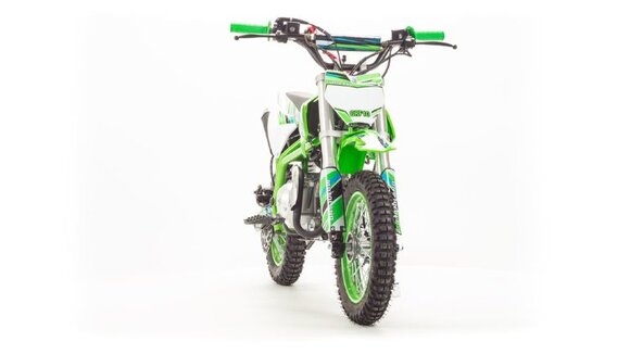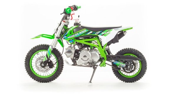 Обновленный надёжный питбайк CRF10 идеален для поездок по грунтовым дорогам и бездорожью. Хорошо чувствует себя на мягком и среднем грунте, разгоняется до 40 км/ч. Оснащён CNC траверсами, фарой, алюминиевыми ободами, весит всего 60 кг. Питбайк прост в управлении и не требует специального ухода, подойдёт как новичкам, так и любителям мотокросса. У кроссового мотоцикла CRF10 отличный узнаваемый дизайн. Конструкция подчёркивает неуступчивый спортивный характер питбайка, который не остановится ни перед одним препятствием. Пластик комбинированный, прочный, не ломается при сгибании. Кроссовый мотоцикл CRF10 доступен в зеленом цвете . Передняя подвеска — телескопическая нерегулируемая вилка перевёрнутого типа, которая отлично подходит для преодоления ям, ухабов и других неровностей плохих дорог или их отсутствия. Задняя подвеска маятниковая с моноамортизатором. Руль 22 мм с высоким подъёмом и перекладиной удобен для мотоциклистов разного роста. Ручки руля — комфортные PRO TAPER. Питбайк оснащён складными рычагами сцепления и переднего тормоза, а также CNC-лапкой переключения передач. Питбайк весит всего 60 кг, при этом выдерживает вес до 100 кг. Оснащён CNC траверсами, рама полудуплексная стальная, мотоцепь качественная. Колёса спицованные, сделаны из прочного и лёгкого алюминия. Размер заднего колеса — 10 дюймов , переднего — 12 дюйм . Тормоза дисковые, передний тормозной суппорт двухпоршневой, задний — однопоршневой. Двигатель Питбайк оснащён карбюратором с фильтром нулевого сопротивления VM22 MIKUNI и одноцилиндровым четырёхтактным двигателем с воздушным охлаждением. Надёжный мотор мощностью 5 л. с. и объемом 70 см³ разгоняет кроссовый мотоцикл CRF10 до 40 км/ч. Коробка передач автоматическая. Система зажигания электронная (CDI). Покрышки с шипами и высоким грунтозацепом идеальны для бездорожья. Мощность мотора и небольшой вес питбайка позволяют ему преодолевать значительные препятствия и непролазную грязь, хорошо заходить в подъёмы. Питбайк CRF10 относится к недорогим моделям, которые при должной эксплуатации работают без сбоев и капризов. Кросс неприхотлив в обслуживании, не занимает много места в гараже. При необходимости в нём легко сменить любую повреждённую деталь. У нас Вы можете купить этот питбайк с бесплатной доставкой по РФ и гарантией до года. Также его можно приобрести в рассрочку или в кредит.