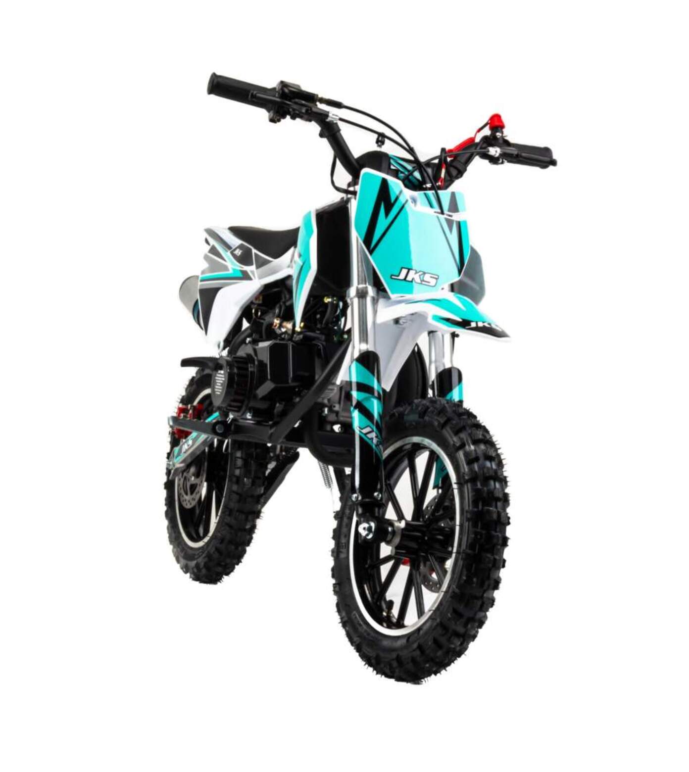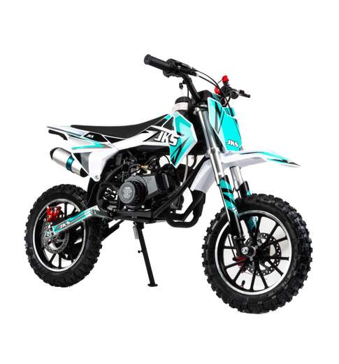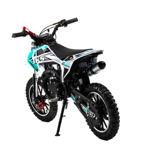 1Детский питбайк MotoLand 50 JKS50 E предназначен для детей от 3 до 7 лет, которые только начинают изучать мотоцикл и технику езды. Особенности модели:50 кубовый, 2-х тактный мотор с вариатором (автоматическая трансмиссия), простой в обслуживании, легкий в обращении, дал газу и поехал, мощность 2,5 лс. Легко справится с весом ребенка и в тоже врем не позволить развить опасную скорость.Для безопасности имеется чека отключения двигателя, если ребенок отпускает руль, то мотоцикл практически сразу отключается при разрыве чеки.Дисковые надежные тормоза.